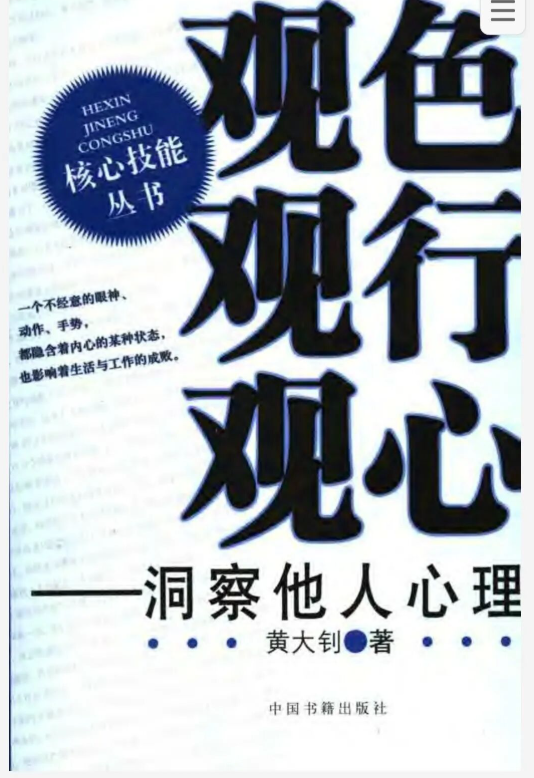 相术书籍《观色观行观心洞察他人心理》黄大钊