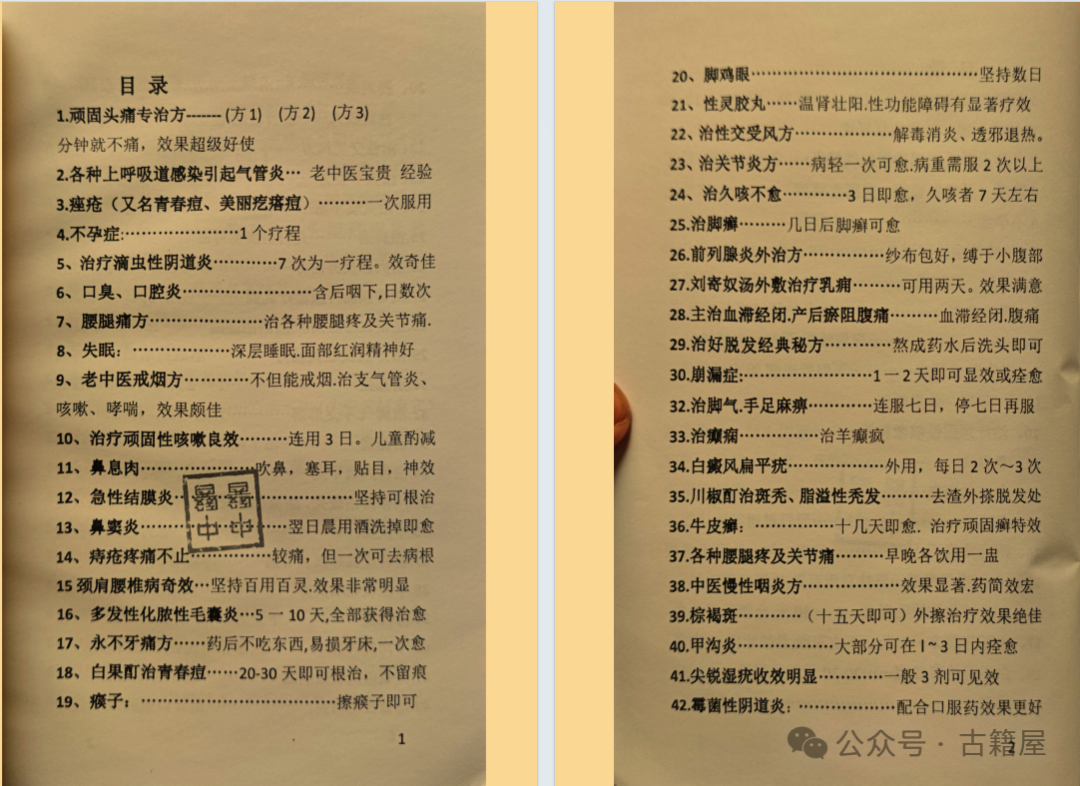 中医方书书籍《祖传药方136条》