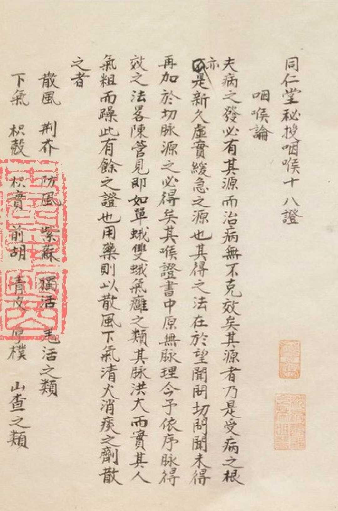 中医五官科古籍《同仁堂秘授咽喉十八证》