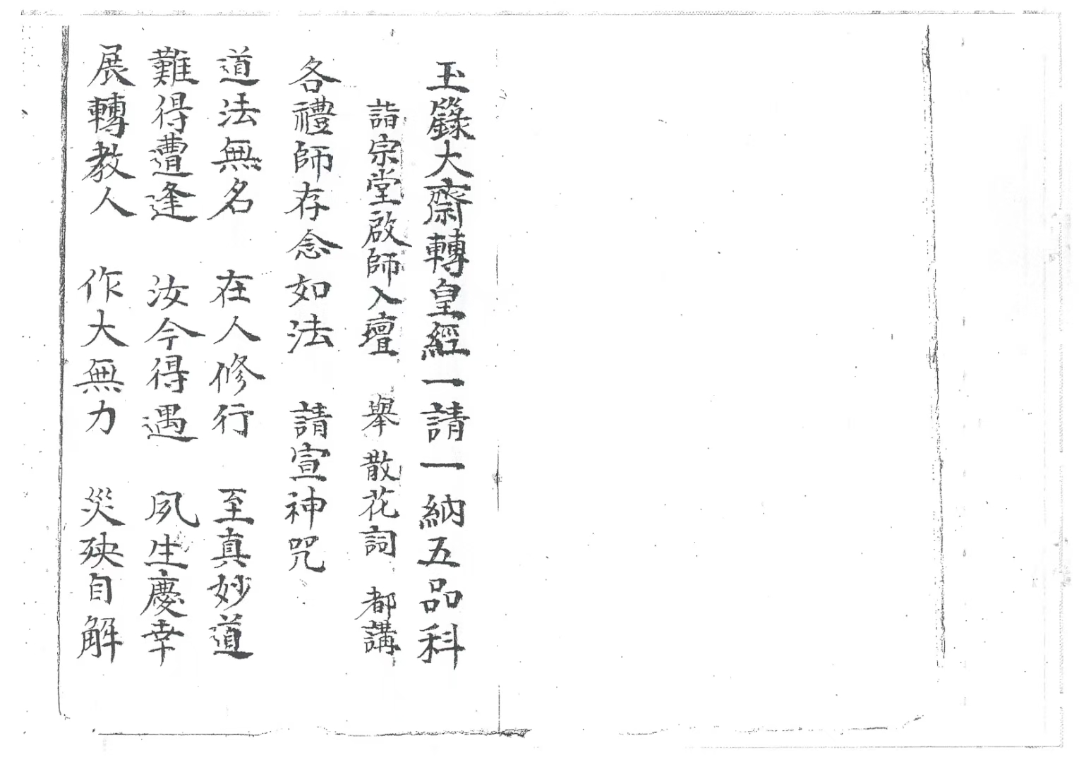 道家科仪古籍《玉籙大齐转经皇经一请一纳五品科》