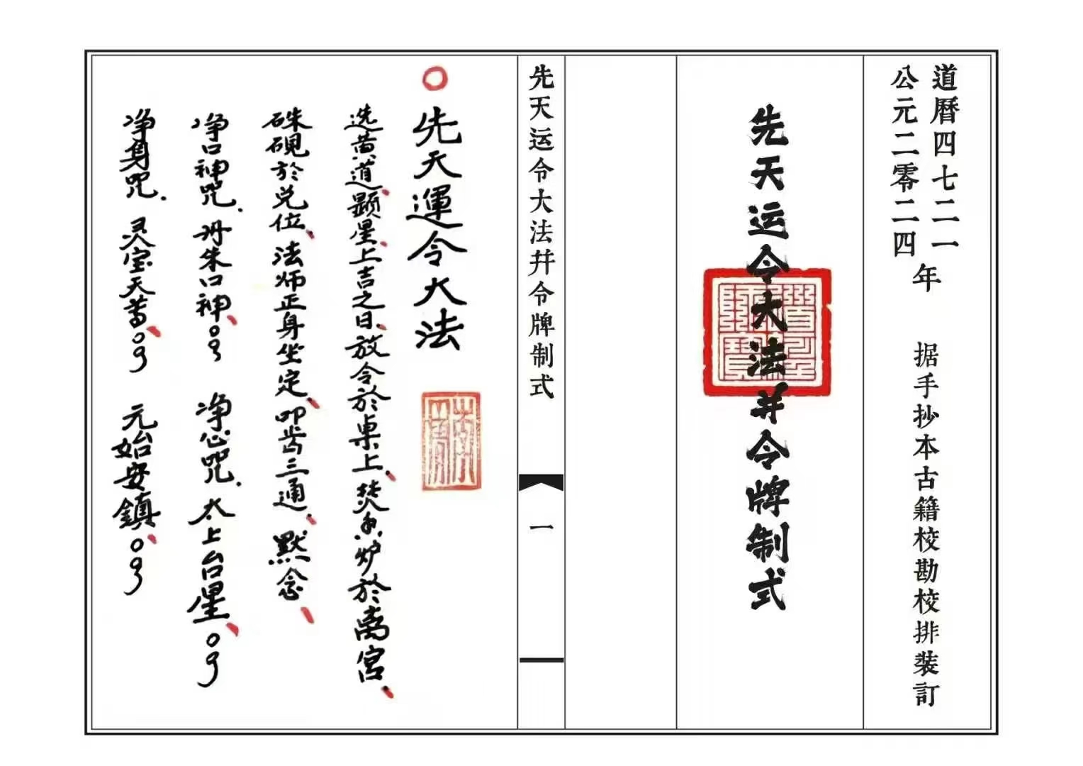 道家书籍《先天运令大法并令牌制式》