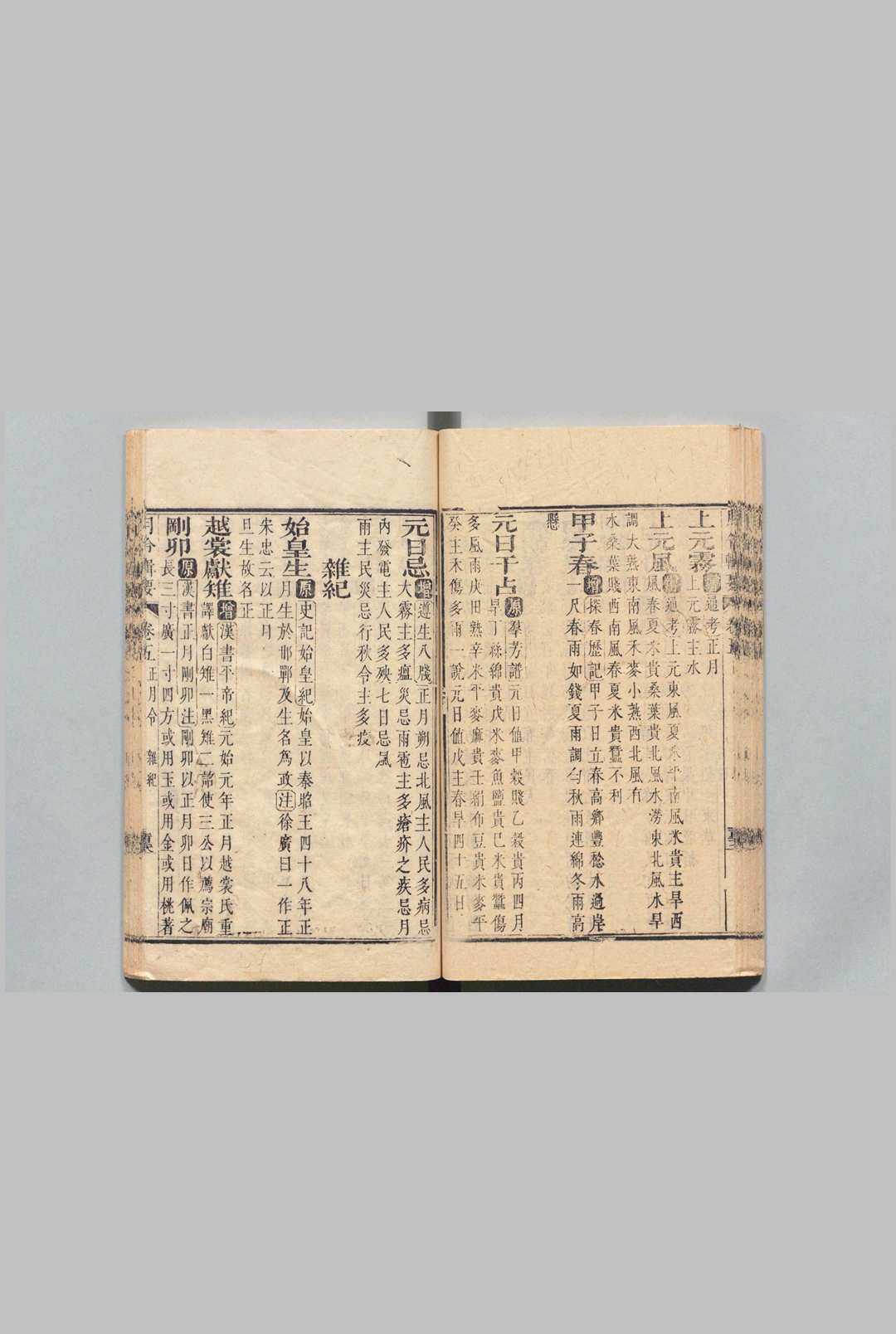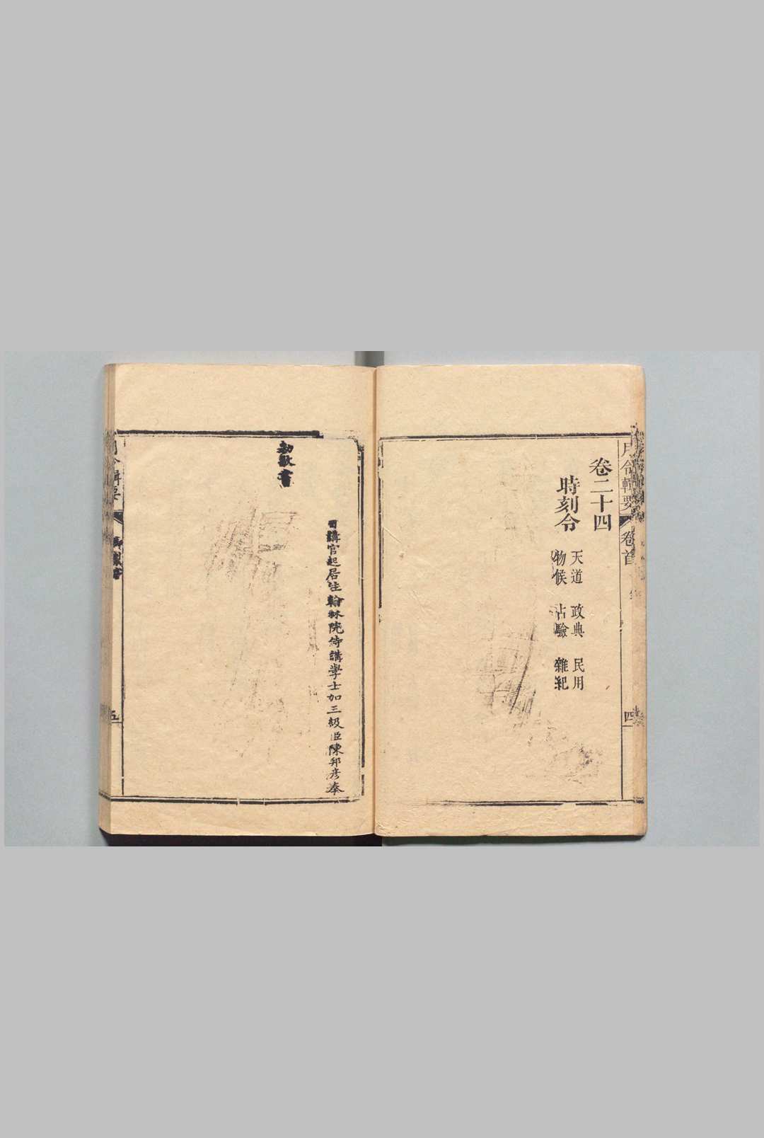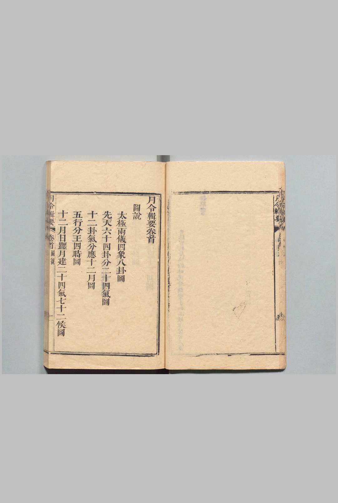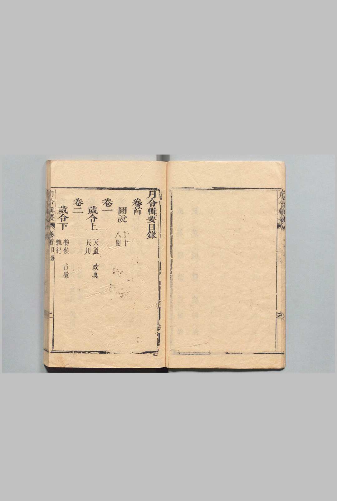 全书分为图说一卷,正文二十四卷,分为:岁令、每月令、春夏秋冬令、正月至十二月令、土王令、闰月令、昼夜令、时刻令。各令按天道、政典、民用、物候、占验、杂纪等子目分别记述。内容主要介绍各种月令及传统民俗活动。