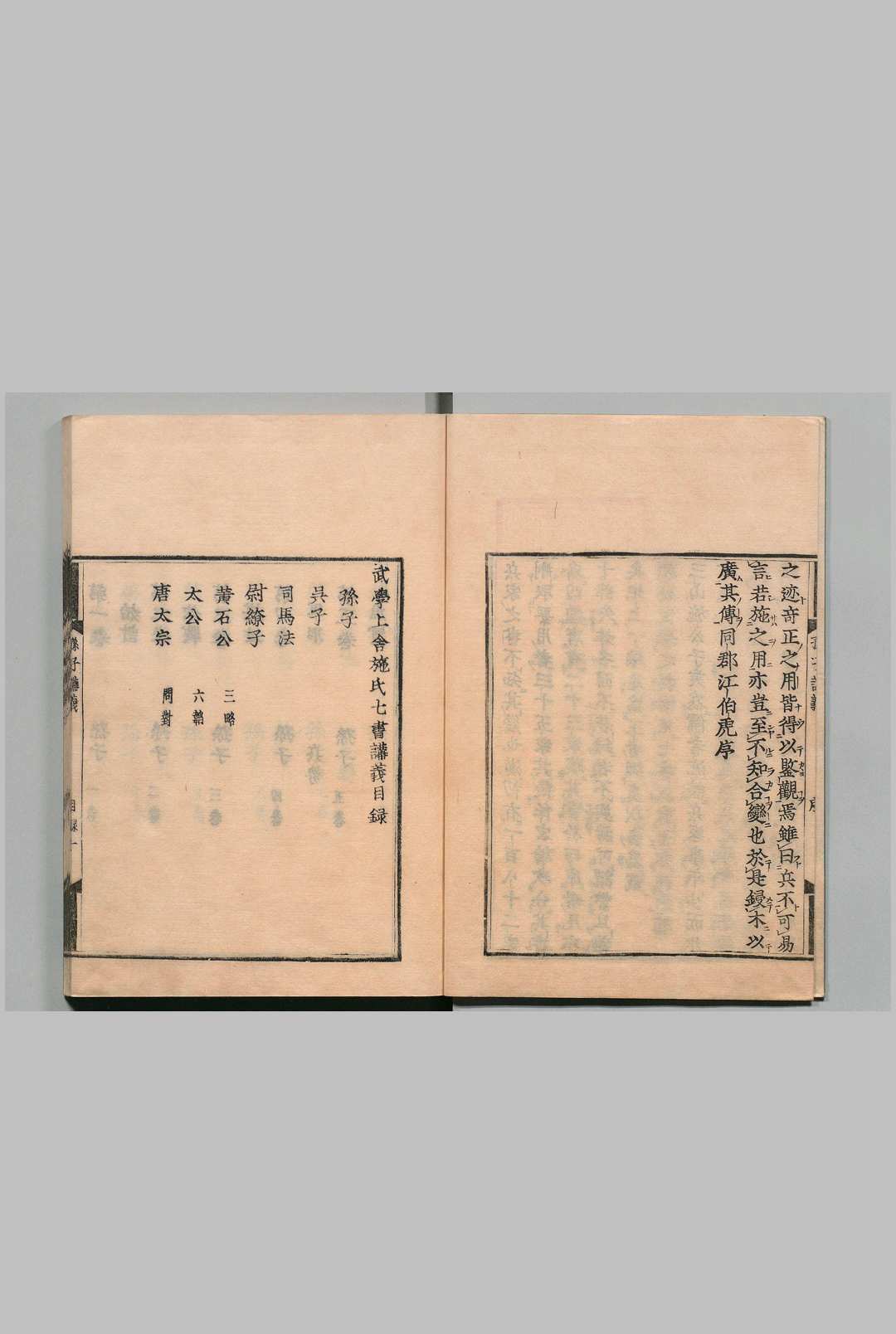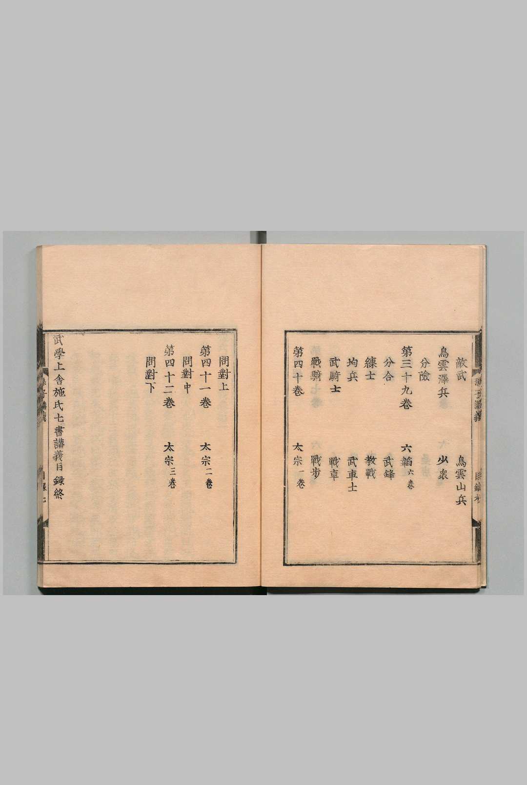 《施氏七书讲义》是现存最早的《武经七书》系统注解本,由宋代学者施子美编撰。全书四十二卷,包含对《孙子》《吴子》《司马法》等七部兵书的逐篇注解,采用宋三体排版并配有夏振翼总论。该书最早刊行于金宣宗元光元年(1222年),现存版本以日本文久三年(1863年)。