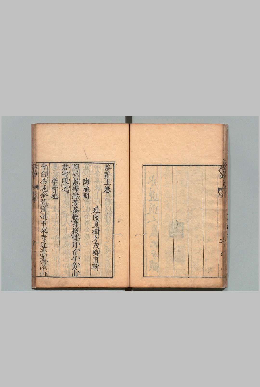 《茶董》是明代学者夏树芳编纂的茶文化典籍,成书于1610年前后。全书分上下两卷,辑录南北朝至宋金时期与茶相关的诗句典故,按人名为纲编列九十九则(一则缺文),现存约3000字,不涉制茶技法,侧重文人茶事雅趣汇编。主要版本包括明刊本、古今说部丛书本及日本宝历八年(1758年)刊本,其中明刊本卷首载冯时可、陈继儒序及董其昌题词。