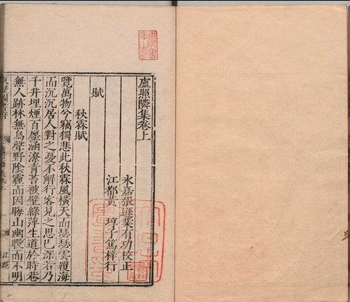 卢照隣集 2卷 卢照隣(唐)张逊业(明)刊本 ,明 , 东壁图书府