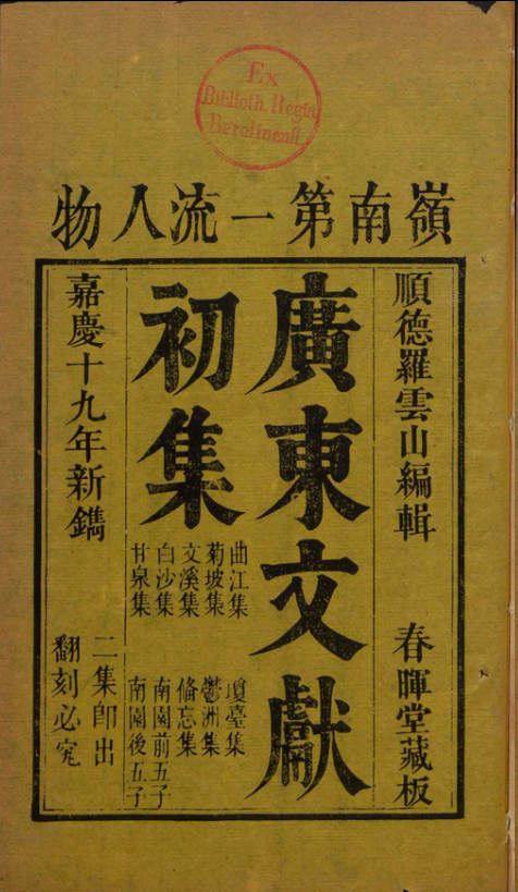 罗学鹏 广东文献初集 18卷 , 1814