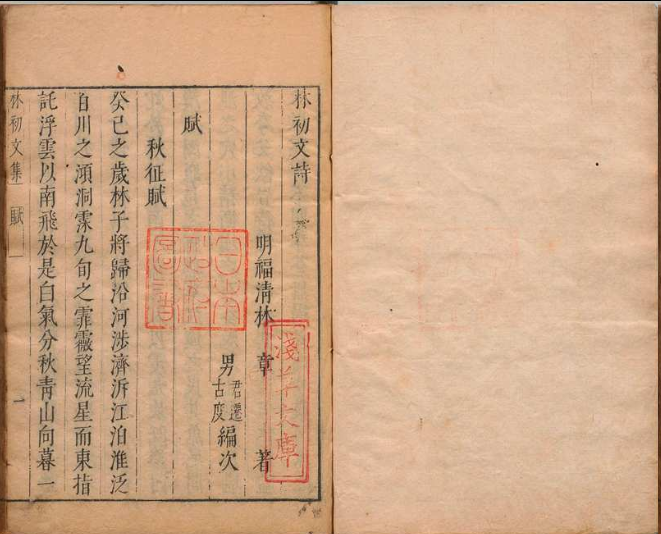 林初文诗 全8卷 林章(明)刊本 ,明末