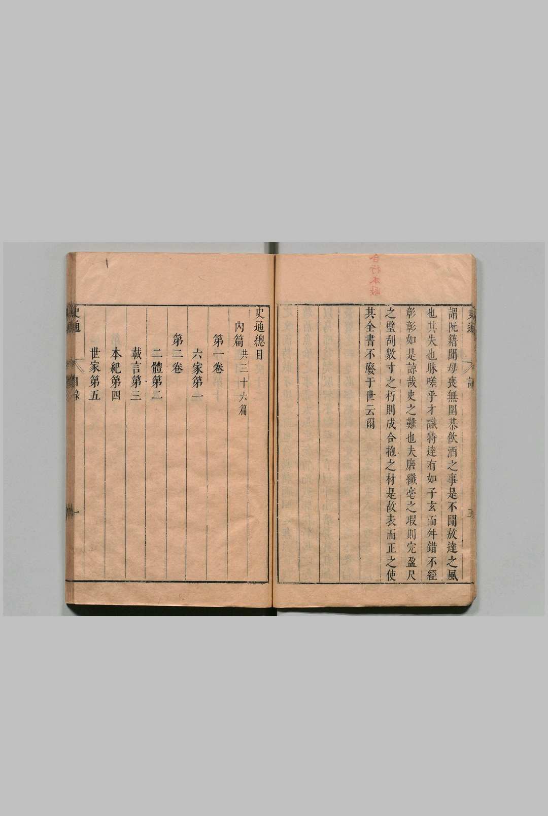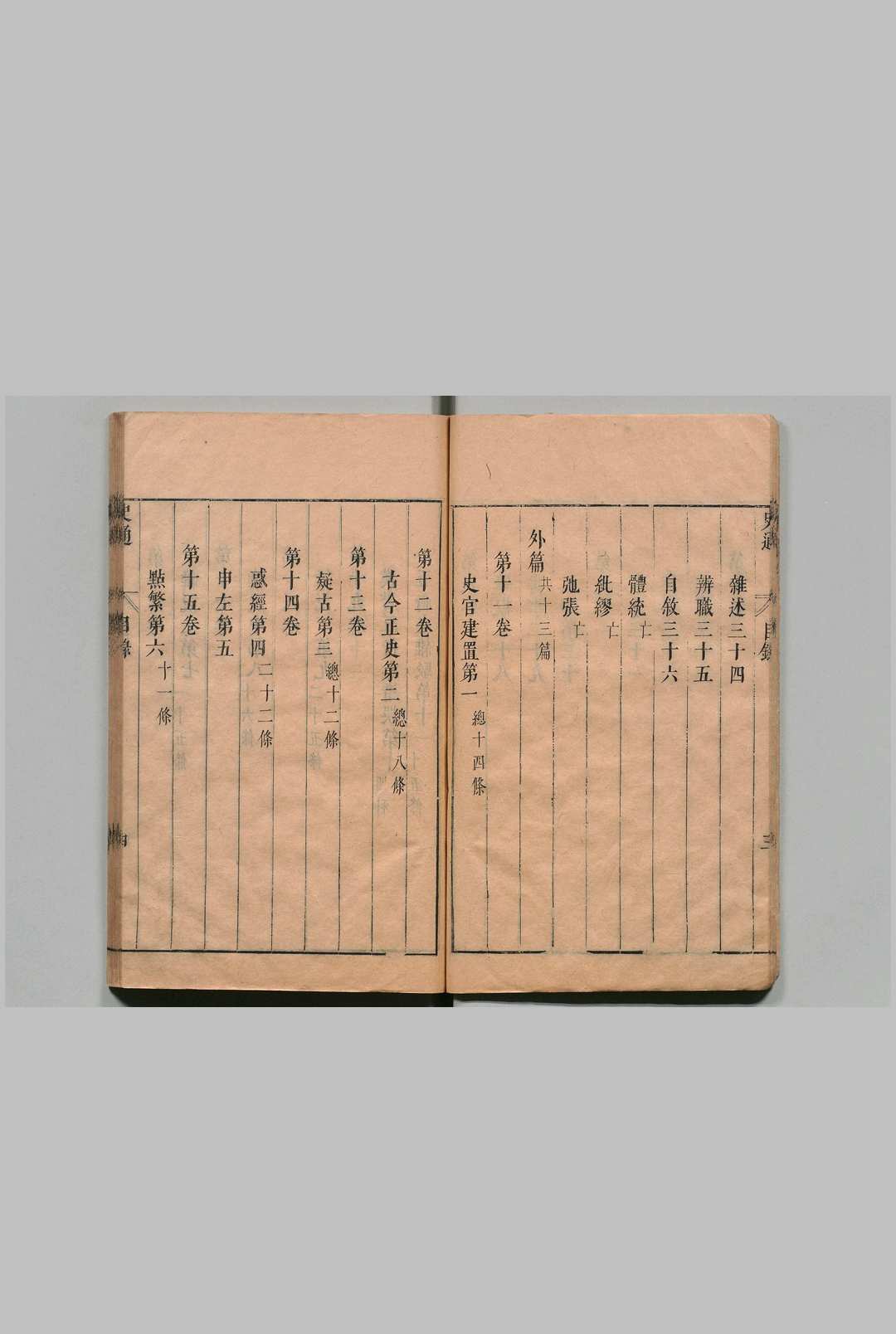 全书共20卷,包括内篇39篇、外篇13篇。其中,内篇的《体统》《纸缪》《弛张》三篇今已失传,今本为49篇。《史通》是针对唐以前的写史所采用的主要体例——编年体和纪传体进行了总结,将采用这两种体例编写的史书称为“正史”,并对这两种体例的编写特点和得失进行评论。书中认为必须沿袭这两种体例,而以后写史的主要体例则是断代体。《史通》既论述了有关史书的体裁体例、史料采集、表述要点和作史原则,也论述了史官制度、史籍源流以及杂评史家得失。