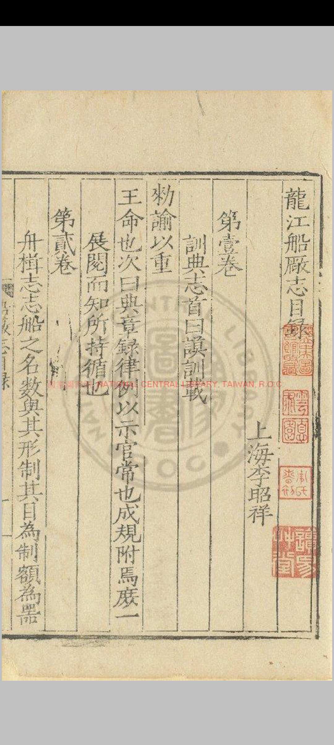 龙江船厂志_(明)李昭祥撰_明嘉靖癸丑(三十二年_1553)刊本