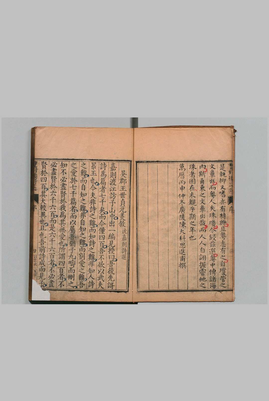 《丰对楼诗选》系明代诗人沈明臣诗歌总集。沈明臣曾为胡宗宪幕僚,与徐渭齐名,晚年隐居南村栎社丰对楼专注著述。该诗集收录其诗作七千余首,原稿经其从子沈九畴删定成书,现存陈大科刻本。曹能始《石仓诗选》将该集列为词苑第一,屠隆赞其文风兼具班马叙事之法。该诗集不仅包含《越中》《过巢湖》等代表作,还与明代抗倭诗研究存在密切关联。