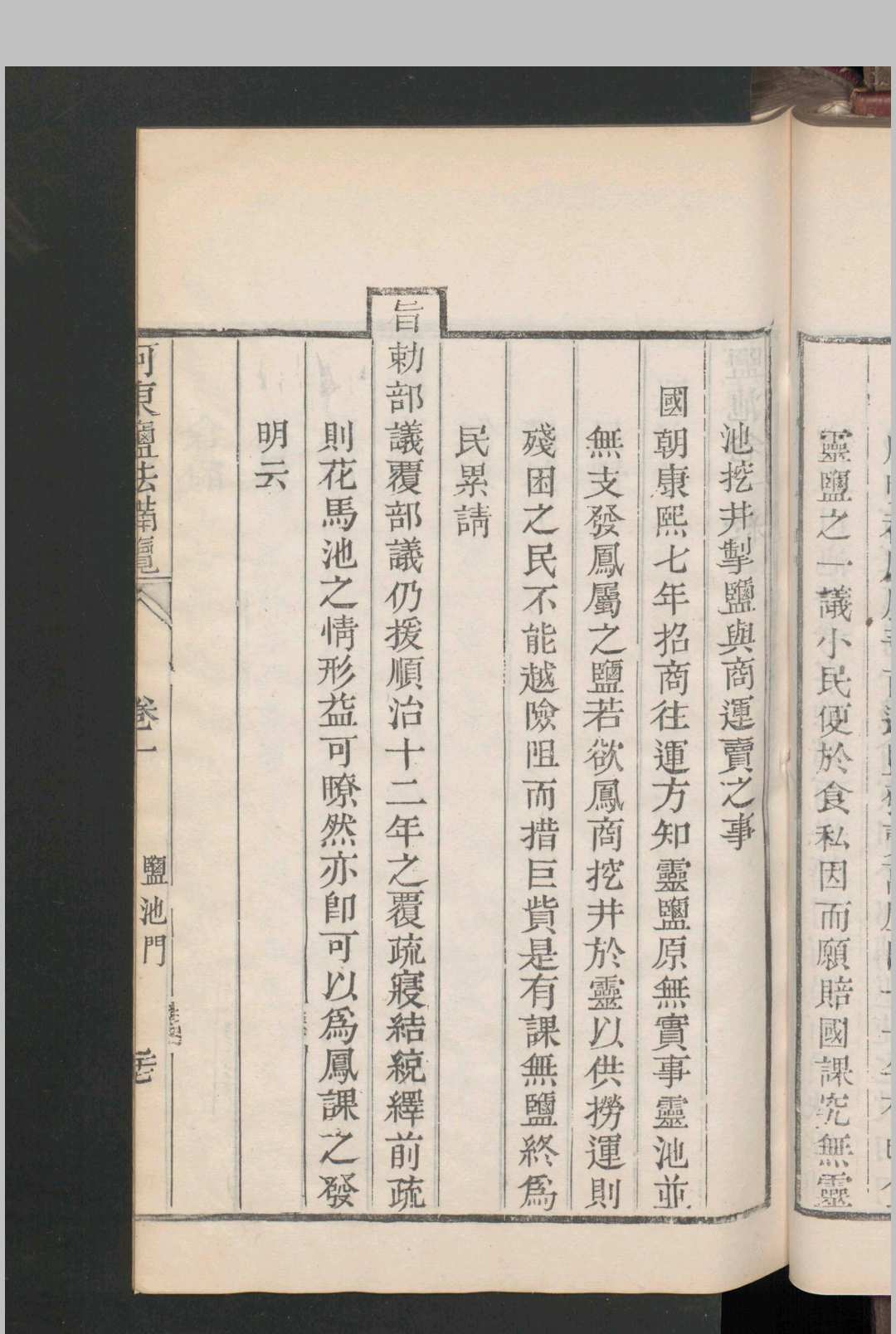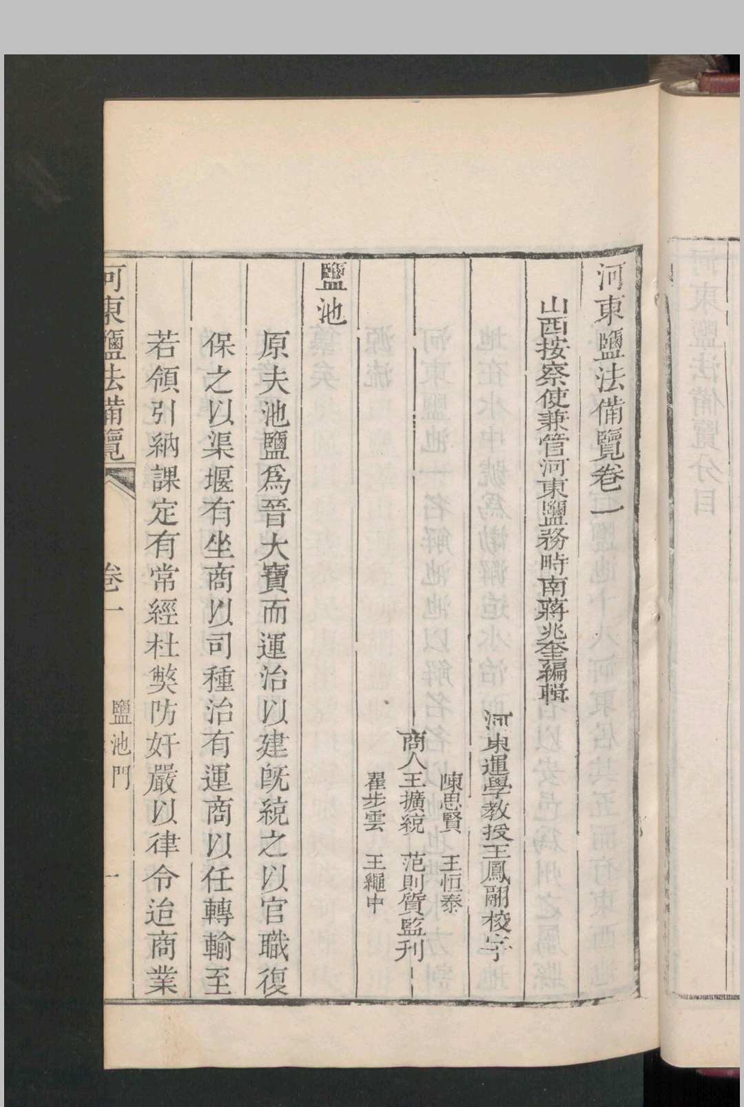 全书分十二卷,涵盖盐池地理、运治政策、渠堰工程、课税标准等,首创官商学合作编纂模式,收录盐商承销数据及水利档案。