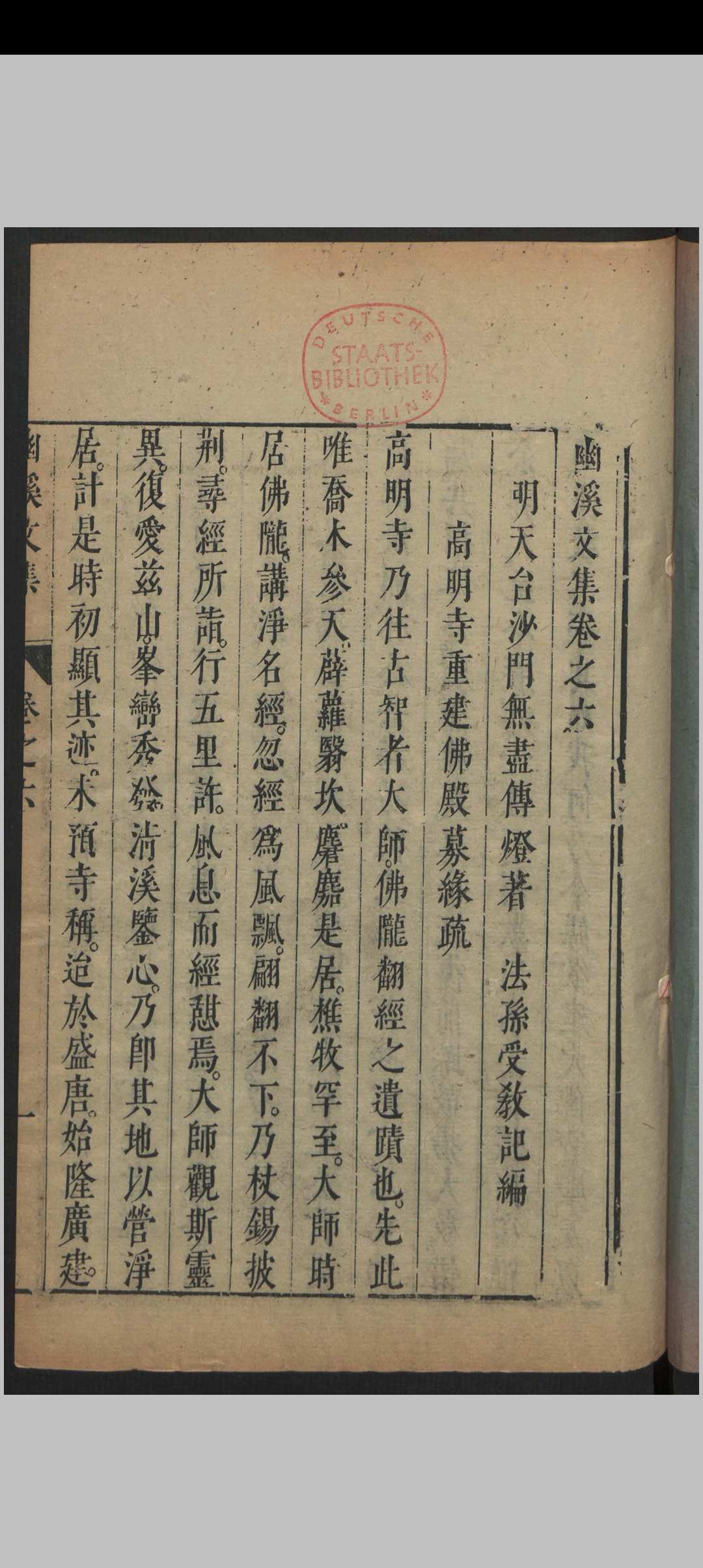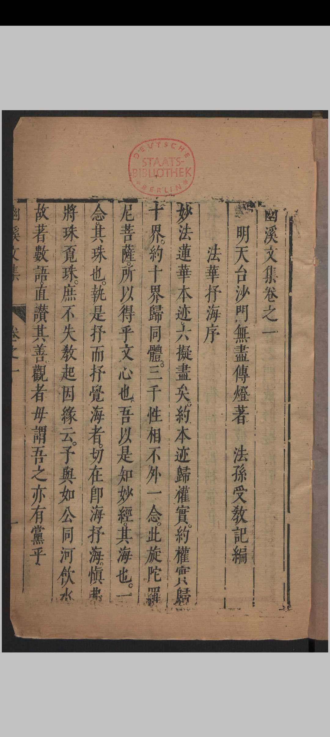幽溪大师,明代中兴天台宗之僧人。幽溪传灯法师,字无尽,别号有门,三衢姑蔑(今浙江衢州龙游县七都下埠叶村)人。其所主天台山高明寺,古为幽溪道场,故学者皆呼为“幽溪和尚”。