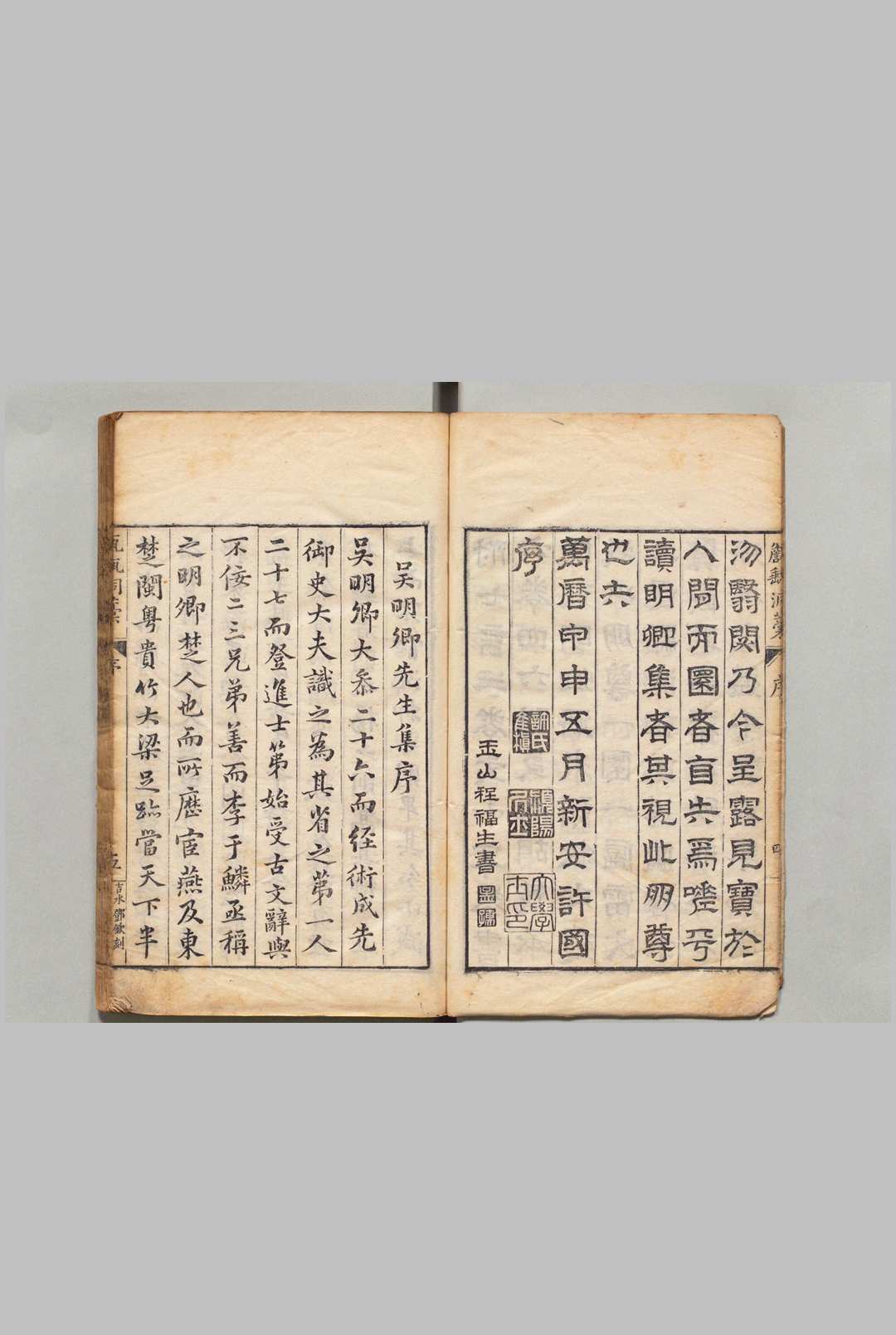 该集初刻于明万历初年,分文集20卷、诗集6卷。万历十二年(1584年)兴国吴氏增补为54卷,三十一年(1603年)递刊本续编27卷。另有明万历十六年(1588年)清白堂刻本、清初吴栋元重刻本等。