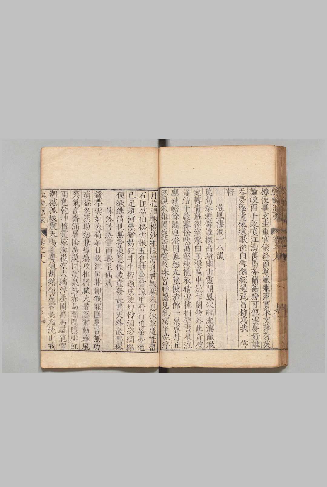 《甔甀洞稿》为明代文学家吴国伦所著诗文集,属“后七子”派重要文献。全书共54卷,目录2卷,收录乐府、古诗、律诗、碑铭、序跋等诗文两千余篇,涵盖四言至七言各体。现存代表性版本为清道光十年(1830年)桂芬斋木活字印本,版式规整,四周双边,单黑鱼尾,分四函装订。