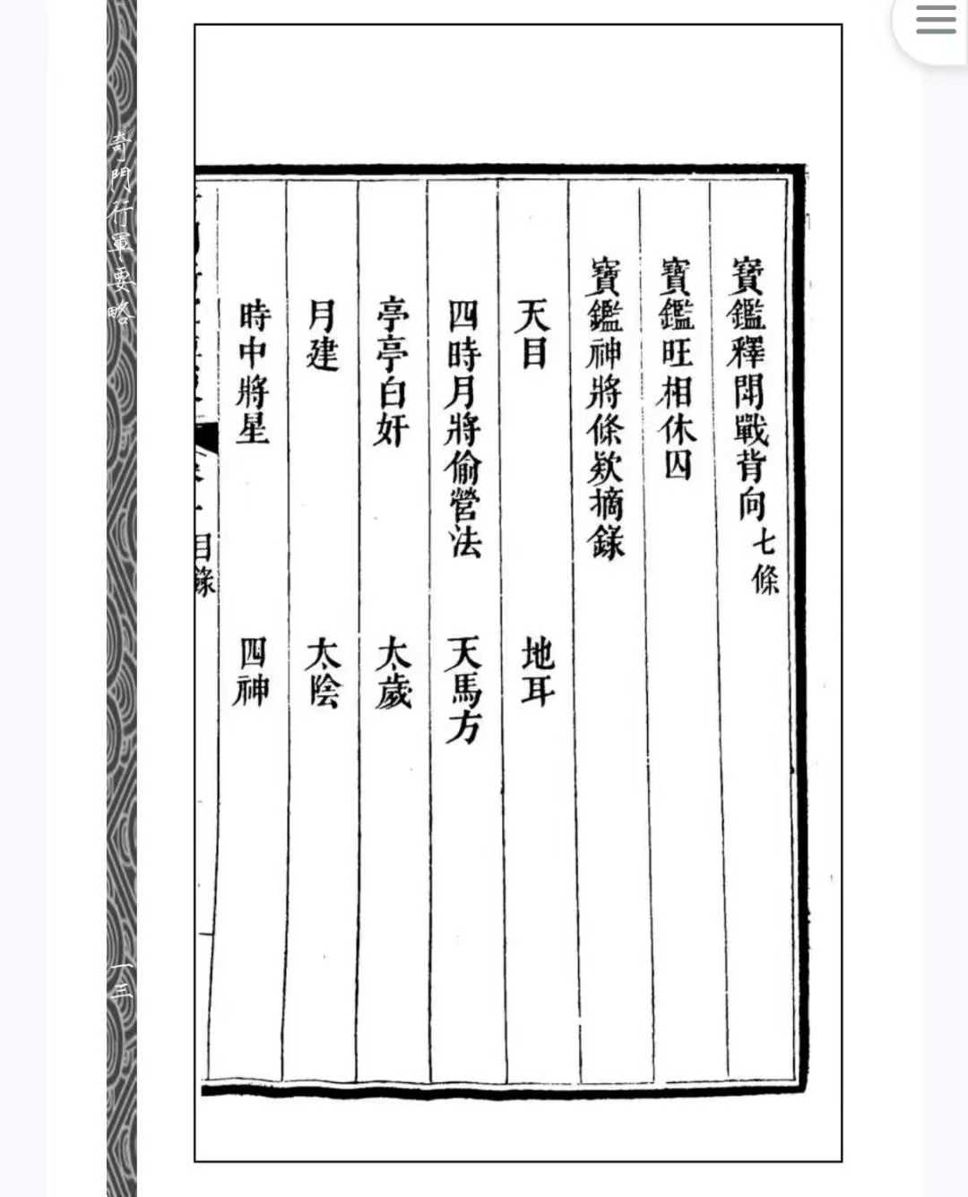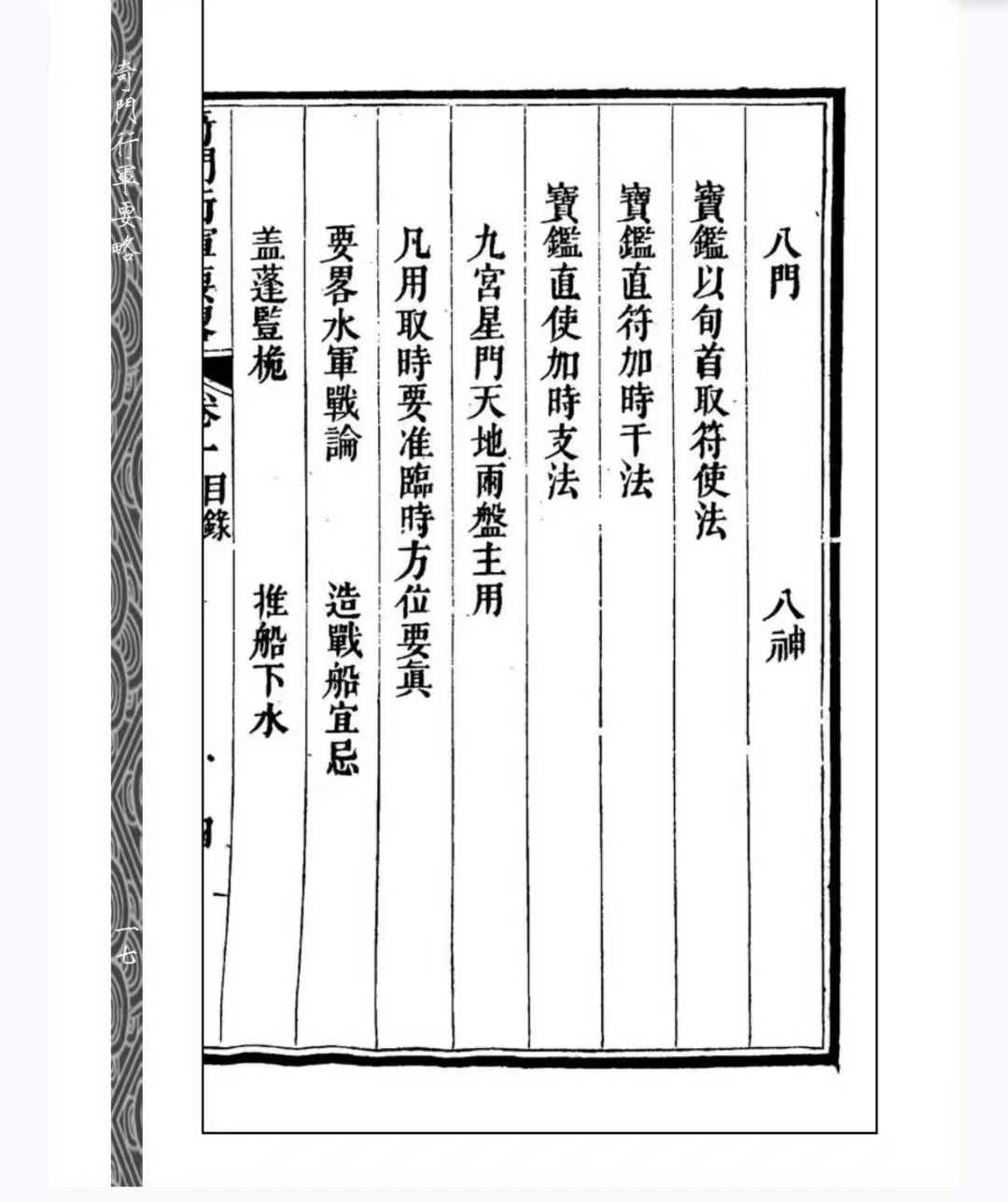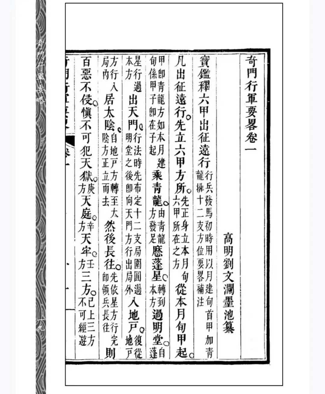 奇门古籍《奇门行军要略》刘文渊页数: 438页简介:《奇门行军要略》刘文渊,奇门相关古籍。《奇门行军要略》是清代刘文澜所著的一部军事占卜类典籍,成书于道光十五年(1835年),旨在为行军作战提供简明实用的奇门遁甲指导。