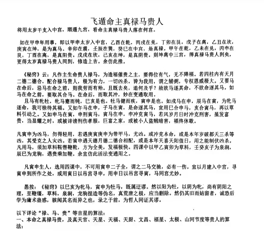 择日书籍《真禄马贵人查法》