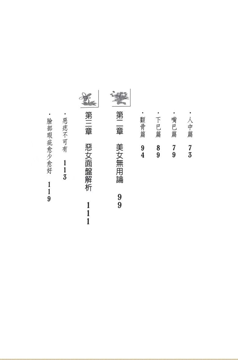 简介:《这种面相的女人你不能不防》欧阳琪,相术相关书籍,女人有断眉及眉相殘敗,是EQ零蛋的情緒失控者女人印堂上有懸針紋,性格極端且處事獨斷,女人的耳位低、垂珠小,則比較貪戀物質的享受,女人嘴邊有黑痣,有異性緣,但在感情上較不安份,女人的顴骨太突出,則攻擊性強,破壞心重。