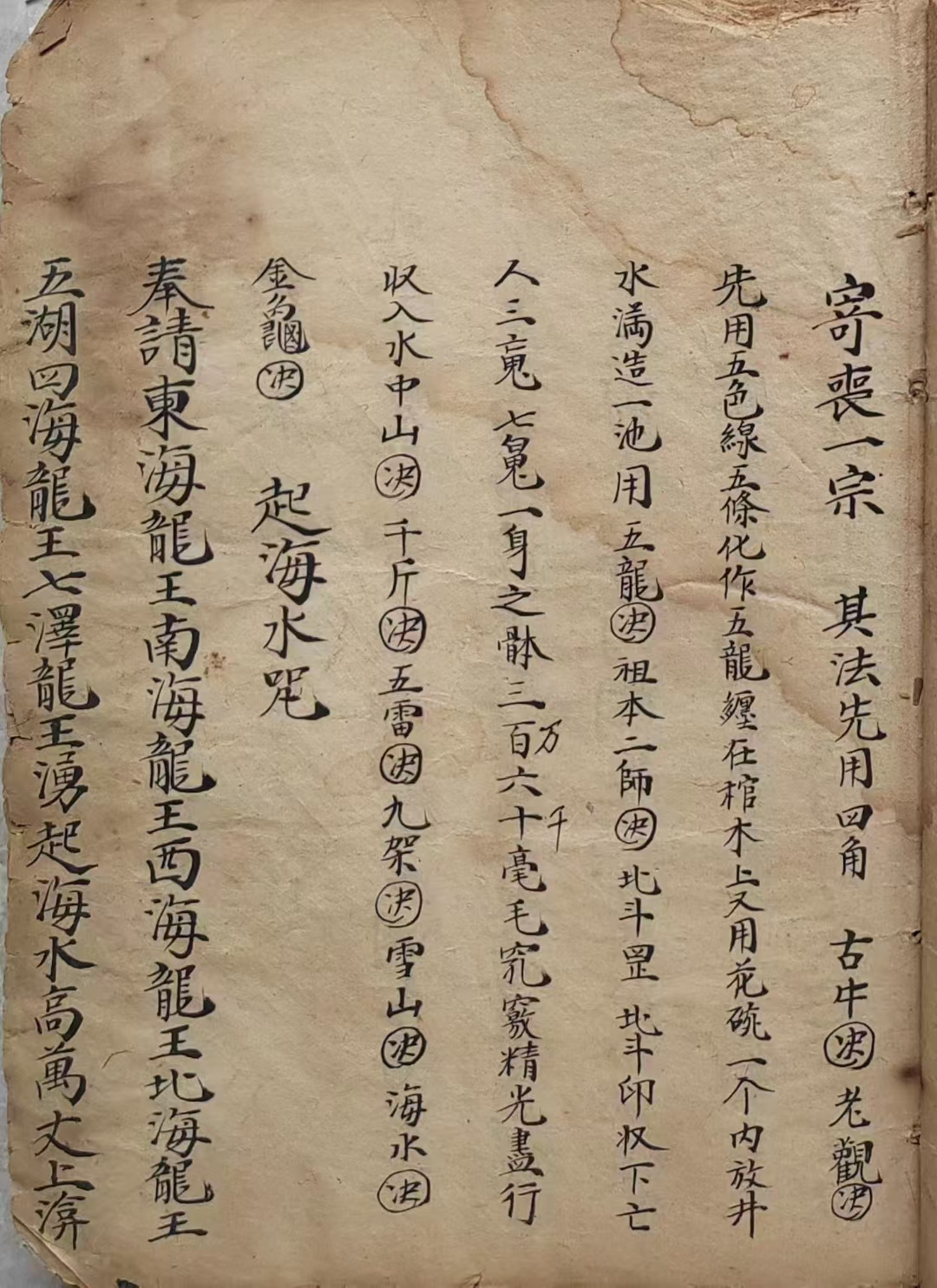 简介:道教符咒法本《清微演教》清抄本,内容包含:寄丧一宗、发重丧、掩棺封殓、起丧法、下葬一宗、落枕空亡起例、禳空亡法、禳重丧法、发架秘语、清宅扫荡一宗、丧事符命、打扫符命、小儿煞符、解犯起土符、亡人落魂斗书等。