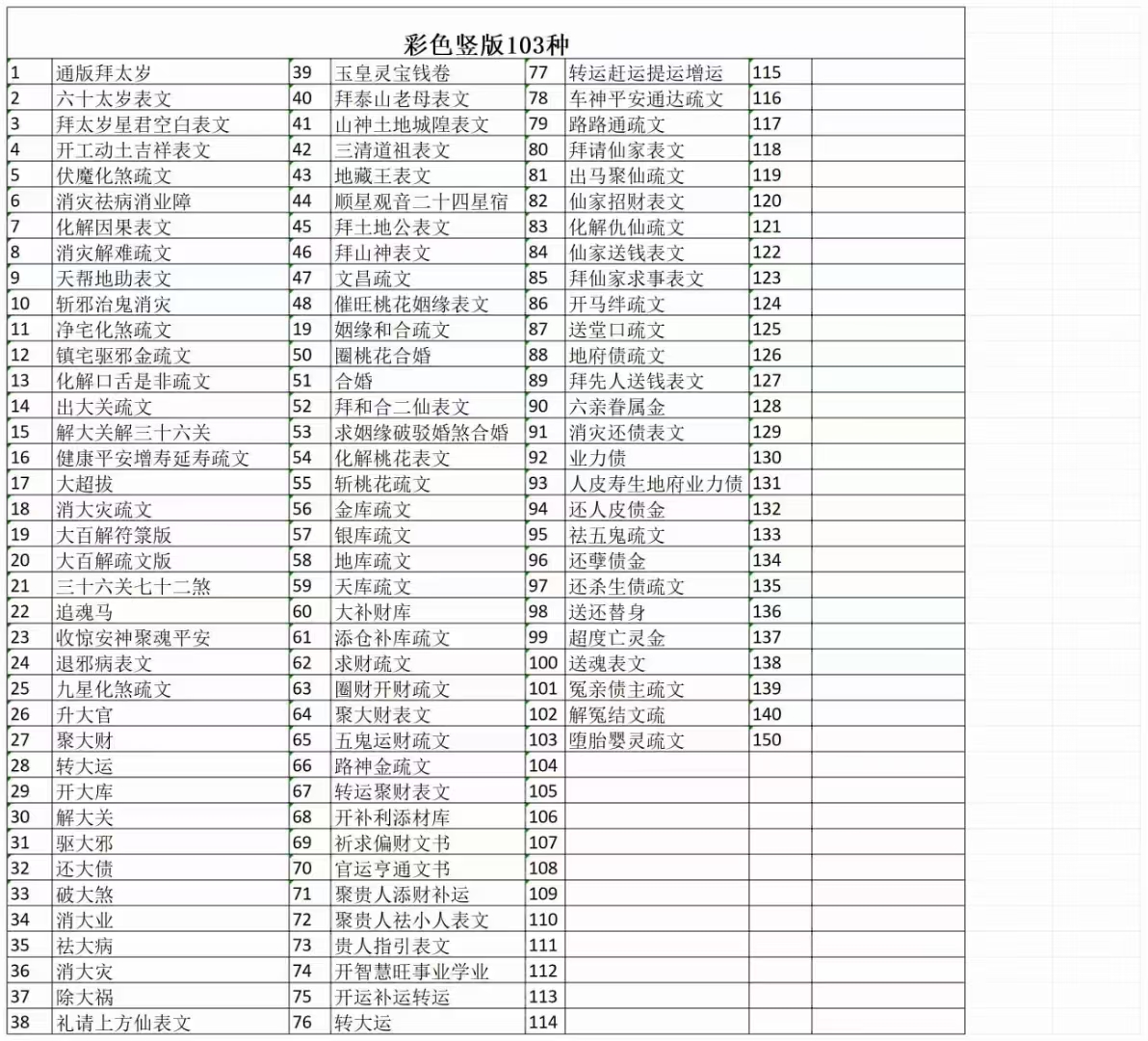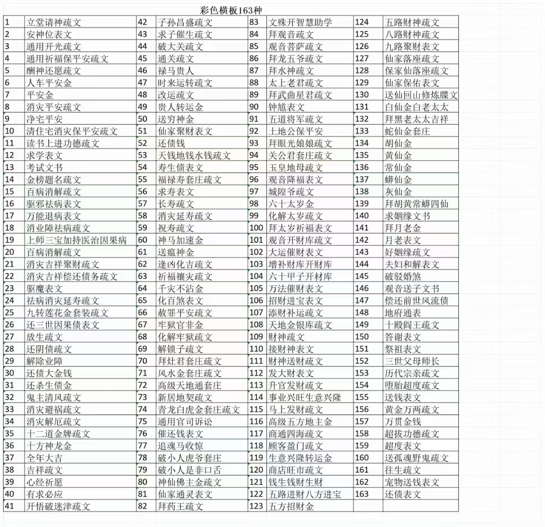 道家书籍《彩色横版佛道仙表文163种》《彩色竖版佛道仙表文103种》