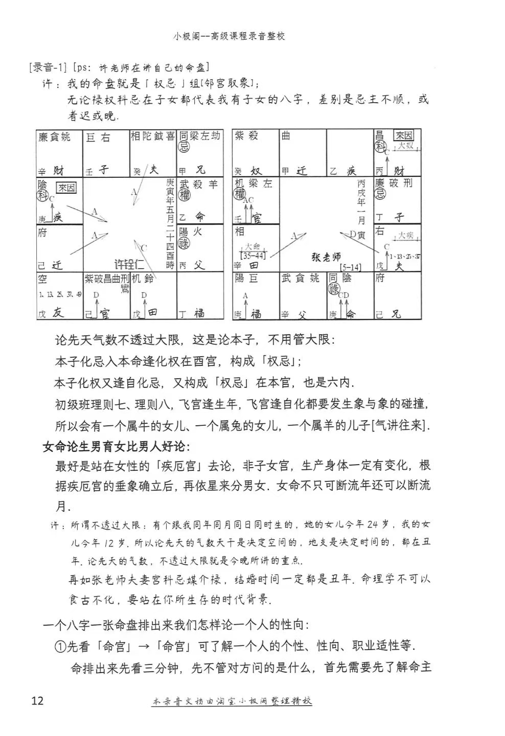 紫微斗数书籍《高级班录音精校》许铨仁 许铨仁-钦天紫微斗数《高级班录音文件整理精校版》