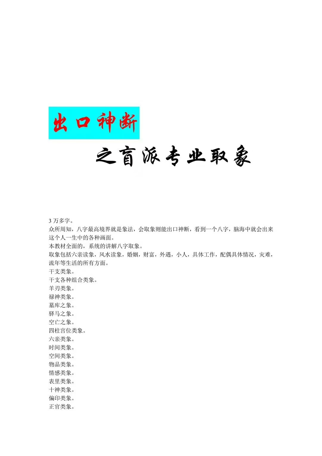 本教材全面的,系统的讲解八字取象。