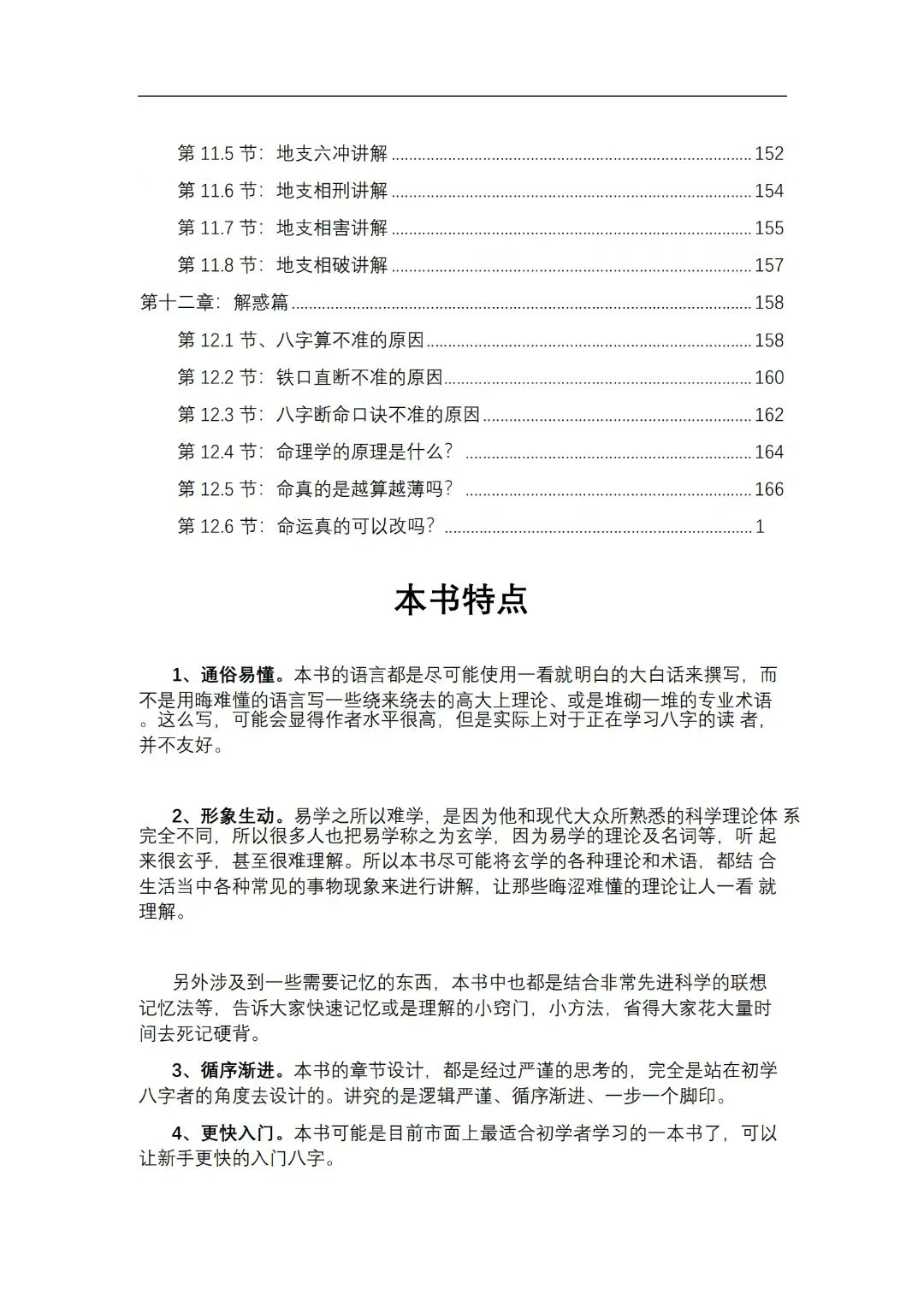 3、循序渐进。本书的章节设计,都是经过严谨的思考的,完全是站在初学八字者的角度去设计的。讲究的是逻辑严谨、循序渐进、一步一个脚印。