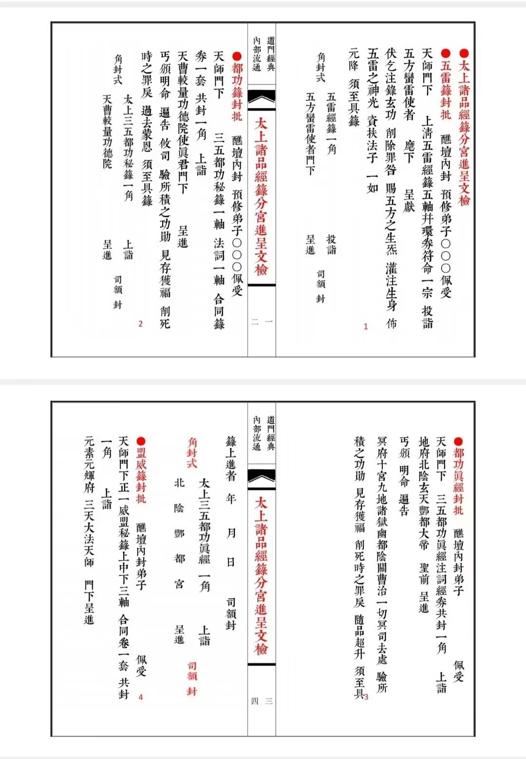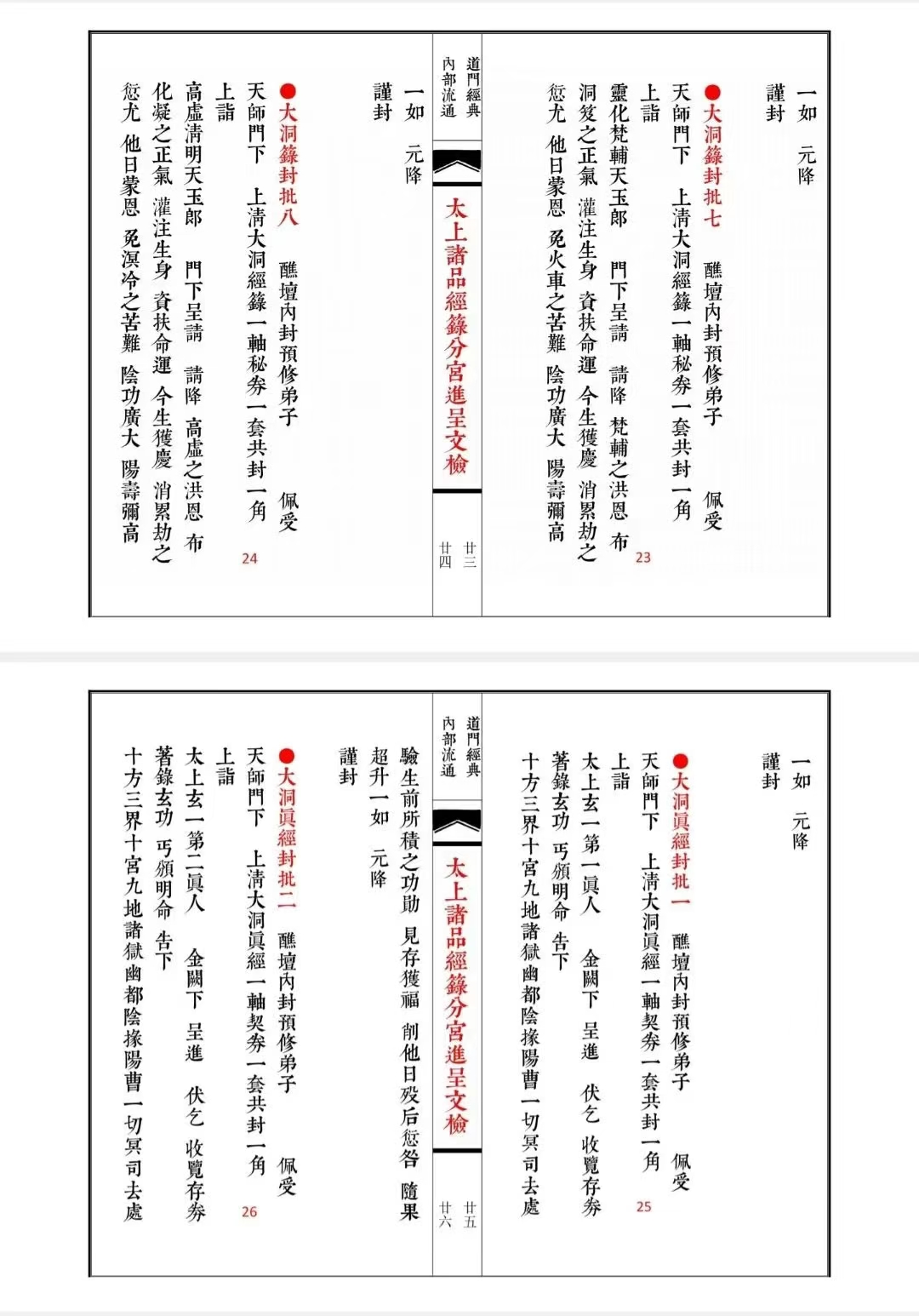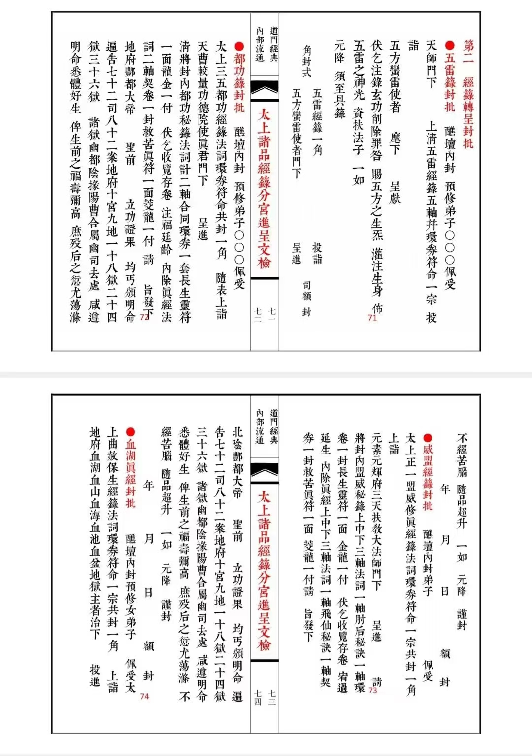 简介:《太上诸品经籙分宫进呈文检》道家相关古籍,内容包含:五雷籙封批,都功真经封批,盟威真经封批,血湖籙封批,仙秩封批,敕赦封批,御表封批,金牌封号,先天道祖封批,路引封批,大洞籙封批,五雷籙封批,玄坛诸封批,大黄经籙封批,岳宫仙秩封批,延生籙中照牒封批,策杖职印封批,四府版策封批,清微颁降缴死亡籙封批移文等。