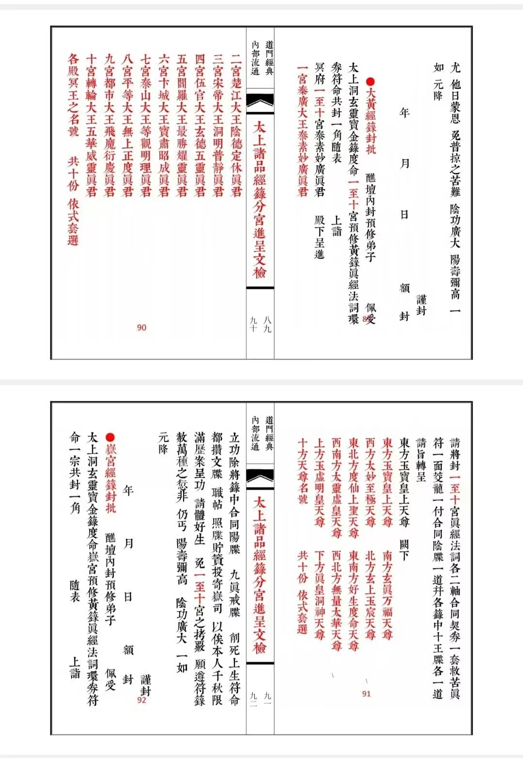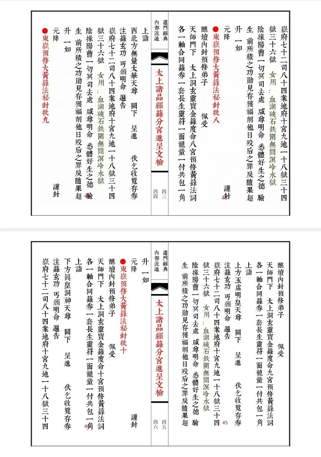 道家古籍《太上诸品经籙分宫进呈文检》