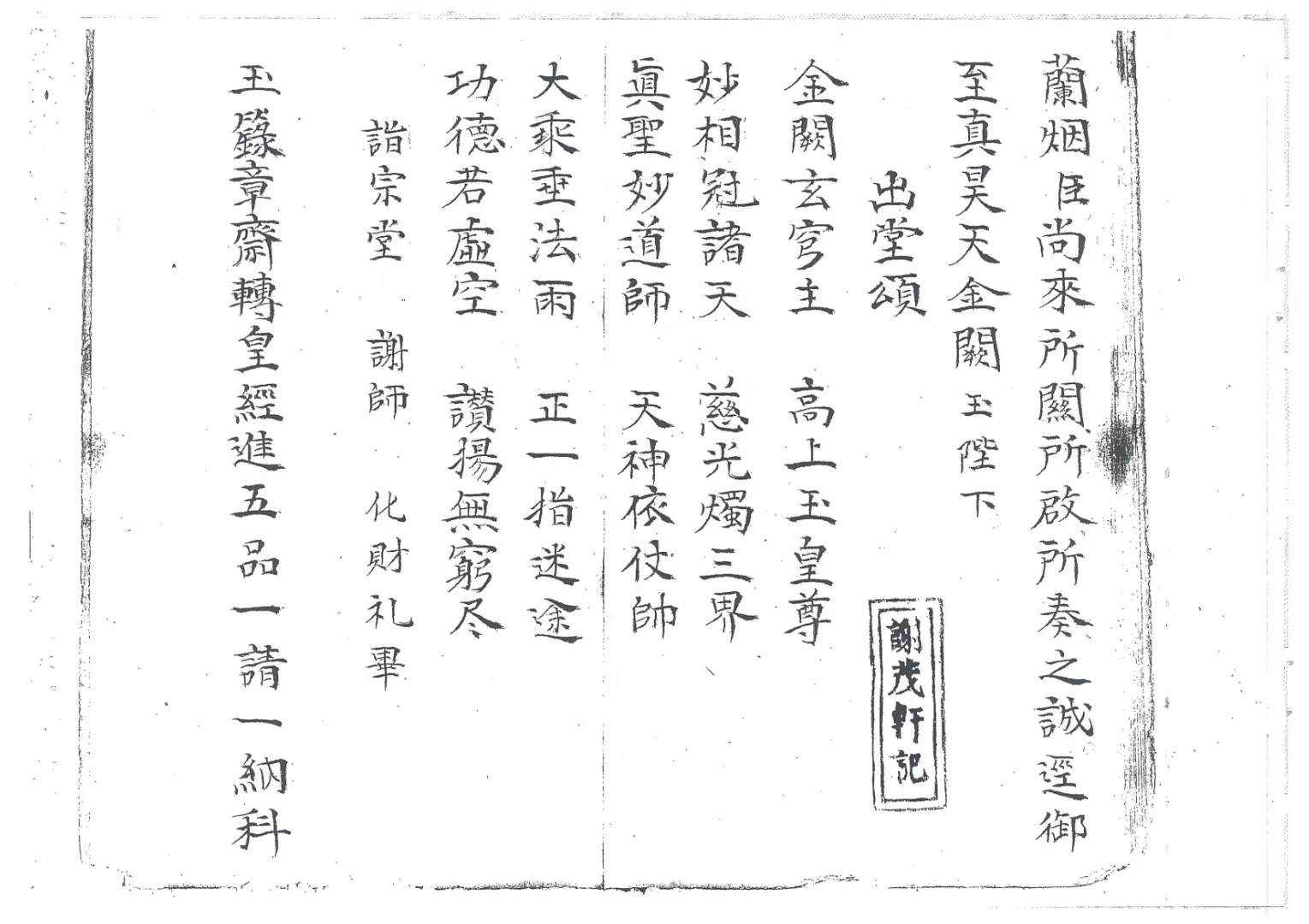 道家科仪古籍《玉籙大齐转经皇经一请一纳五品科》