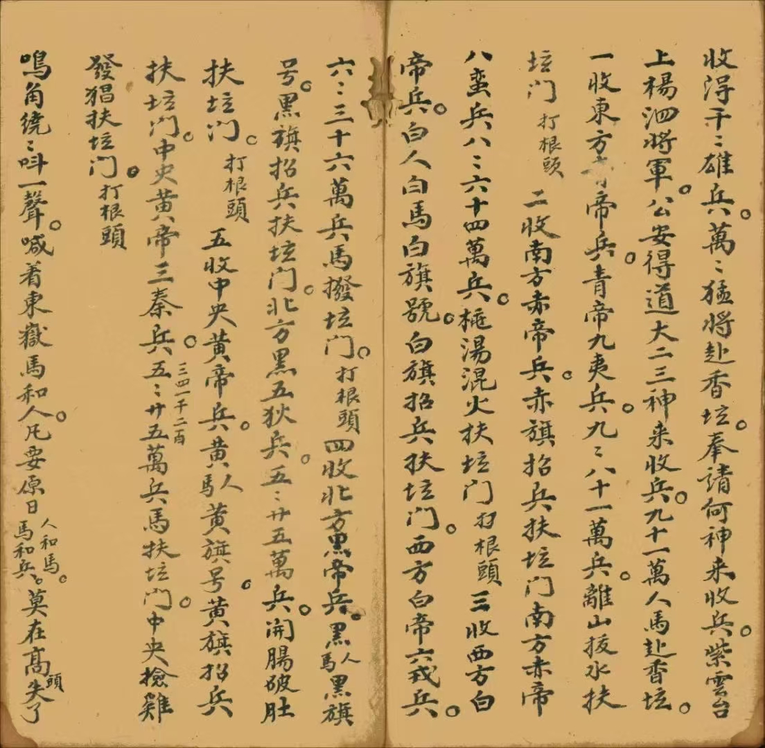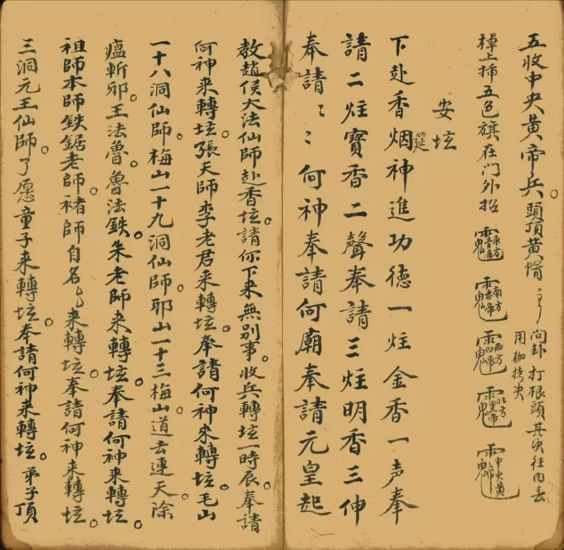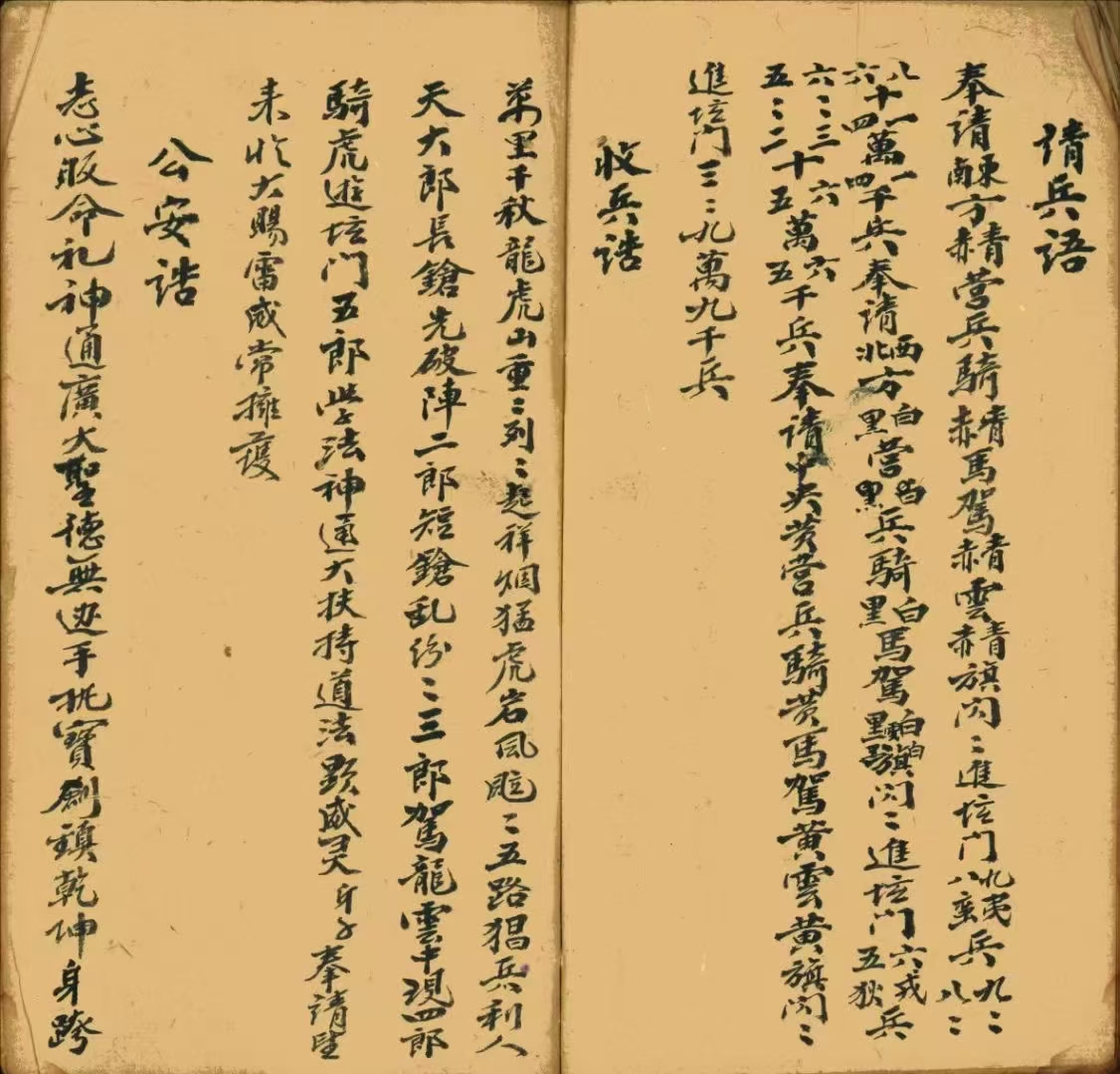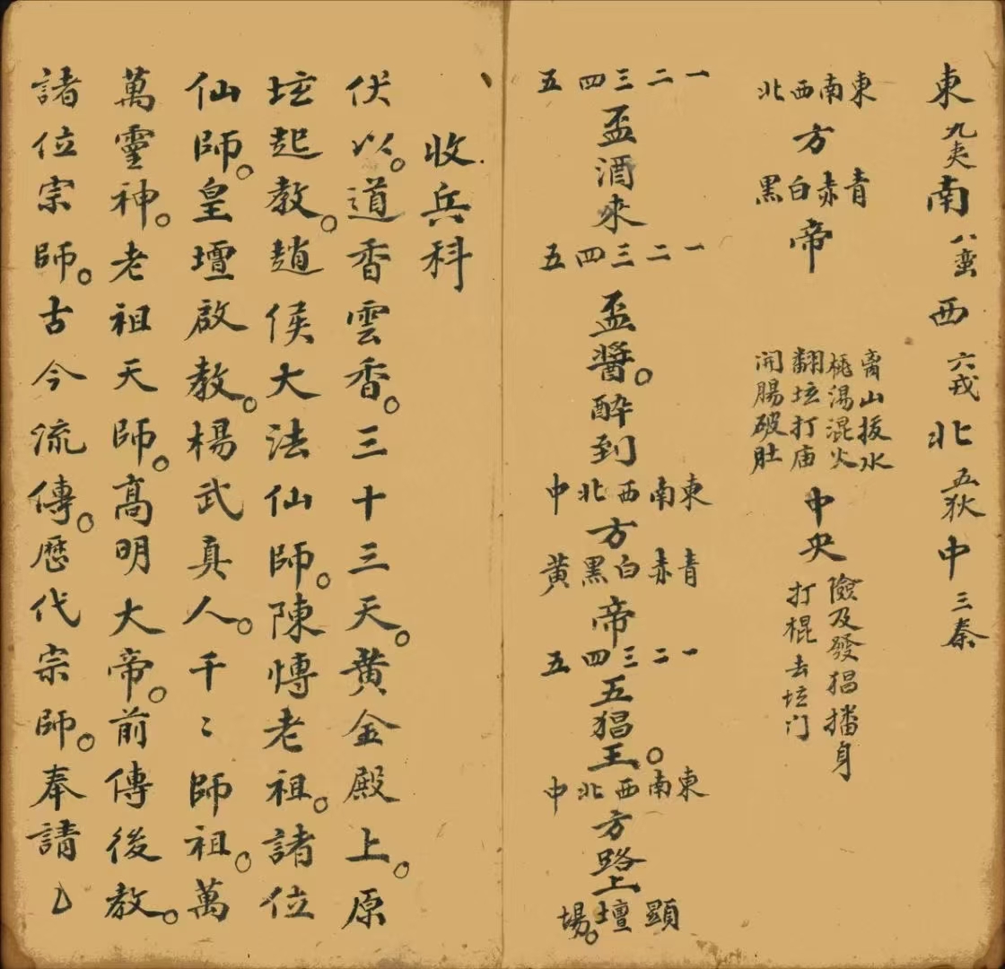 简介:《收兵诰大法庵》道家符咒相关古籍内容包含:放兵一套,收兵科,安坛,五方同前一宗,造神下马一宗,藏身一宗,差元帅枷鬼一宗,毛山诰,宗师诰,五郎诰,侯伯都督诰,杨泗诰,催兵咒,请兵诰,收兵诰,公安诰,金国龙王诰,大神浩,二神浩,三神诰,杨将军诰,祭五猖诰等。