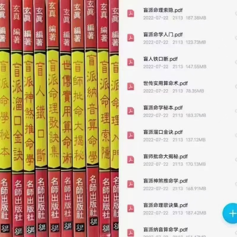 简介:《玄门盲派命理合集10册》玄真道家盲人铁口断,盲派命理系列10本合集,书目如下: