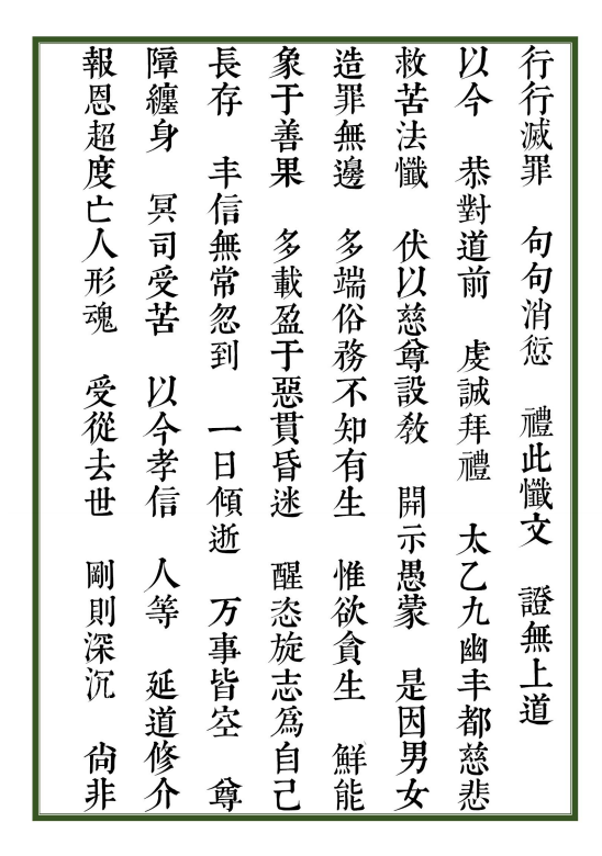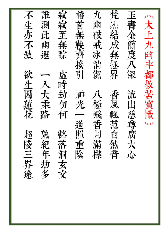 简介:《太上九幽丰都救苦宝忏》道家科仪相关古籍,“太上九幽丰都救苦宝忏”是道教忏法中的一种,旨在通过忏悔、礼拜等仪式,超度九幽地狱中的苦难众生,祈求消灾解难、超生解脱。相关内容多见于道教经典及忏仪文献中,通常包含对酆都地狱的描述、忏悔罪业的仪式以及祈求慈悲救度的祈愿等。