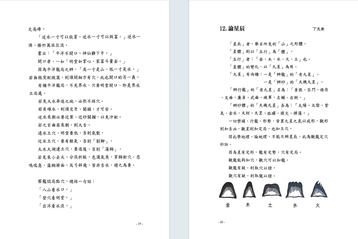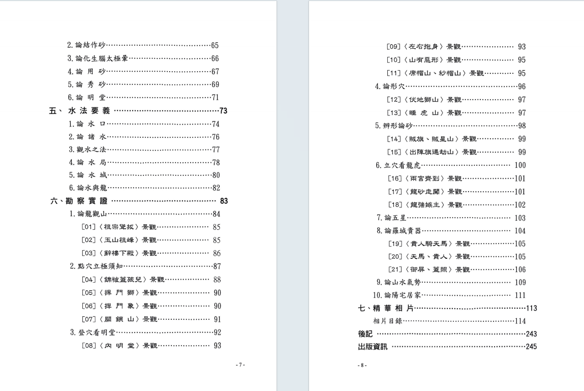 简介:《龙穴砂水精义》丁元黄,堪舆风水相关书籍。堪舆学首重“峦头形势”,其次才是“时运理气”,再其次才是“择日选时”。只是现化人的应用程序,刚好反其道而行。阴阳两宅的吉凶验证,也须就地论理,以推测人事的吉凶。见“机”验断者,乃“占卜、通灵”之术。堪舆典籍经常提到,“峦头无理气不灵。理气无峦头不准。”但是“空间”的环境有“形势”理气;“时间”的气运有“天运”理气;“人事”的运用有“选时”趋避;以上必须了解明辨。古籍的“峦头”形势书籍,皆以大陆“中原”的地理环境作论说。有某些高明的论著又是大而化之,通其“神理”的鸟瞰作品。所以对初学者在应用上彷彿有些困难。察龙点地,首重行龙是否成局并加以判定。若行龙已驻息,则重“点穴、立极”,以致其大用。本书的编排,纯取“龙、穴、砂、水”的学理精华,作重点的提示,以利初学者能轻易入门,了解堪舆玄机。
