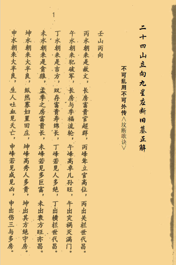 简介:《二十四山立向九星应断》旧坟正解 入坟断断歌诀,堪舆风水相关书籍。