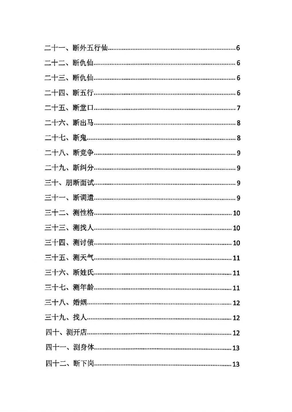 家苮,外苮,胡苮,黄苮,先天一㑽人㐷,后天一㑽人㐷,一㑽人㐷一㑽兵,外五行苮,内五行苮,密宗苮,各种仇苮,老辈香根,是否出㐷,四梁八柱不全,还阴债,断各种关煞。
