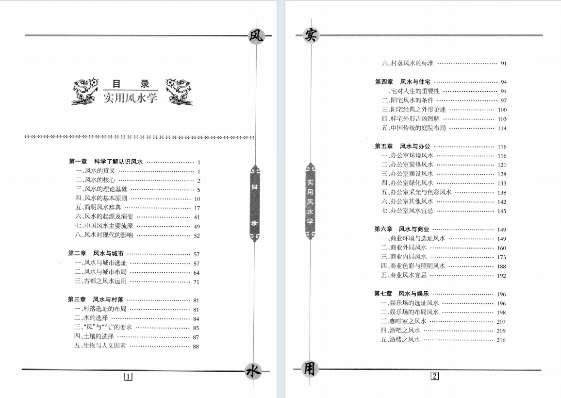 简介:《实用风水学》邵伟华,堪舆风水相关书籍。第一章 科学了解认识风水 1 (p1-1): 一、风水的真义 2 (p1-2): 二、风水的核心 5 (p1-3): 三、风水的理论基础 10 (p1-4): 四、风水的基本原则 17 (p1-5): 五、简明风水辞典 41 (p1-6): 六、风水的起源及演变 49 (p1-7): 七、中国风水主要流派 52 (p1-8): 八、风水对现代的影响 57 (p2): 第二章 风水与城市 57 (p2-1): 一、风水与城市选址 64 (p2-2): 二、风水与城市布局 71 (p2-3): 三、古都之风水运用 81 (p3): 第三章 风水与村落 81 (p3-1): 一、村落选址的布局 84 (p3-2): 二、水的选择 85 (p3-3): 三、“风”与“气”的要求 87