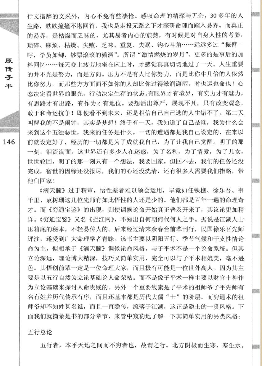 简介:《原传子平》徐辛,八字命理相关书籍。《原传子平》是徐辛所著的一部关于子平命理的著作。该书以通俗易懂的方式阐述了子平命理的基础知识、理论体系和实际应用,尤其注重将传统命理与现代生活相结合,帮助读者理解命理学在现实生活中的意义。书中涵盖了阴阳五行、十神体系、格局用神、大运流年等核心内容,并通过案例分析和实践指导,使读者能够逐步掌握命理学的基本方法和技巧。
