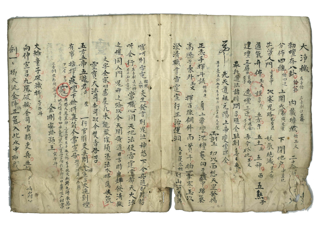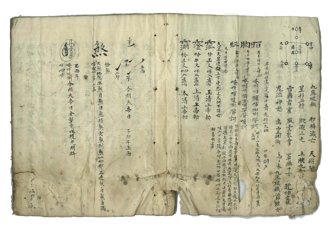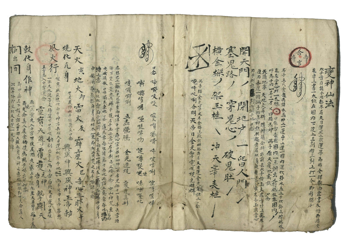 简介:《发遣内功法要》江南地区无锡清微秘本,道家相关古籍。内容包含:发遣内功法要,九凤破秽法,三光气法,三清讳,五方气法,煞气法,金光气法,大净秽,封文书一事,变神骨头,变神仙法,金光咒三十六雷音,五火变,剔斗布罡诀,发遣文,城隍,土地、破地狱法等。