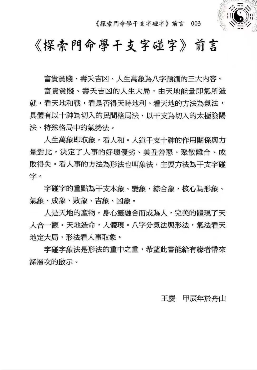 命理八字书籍《探索门命学干支字碰字》王庆