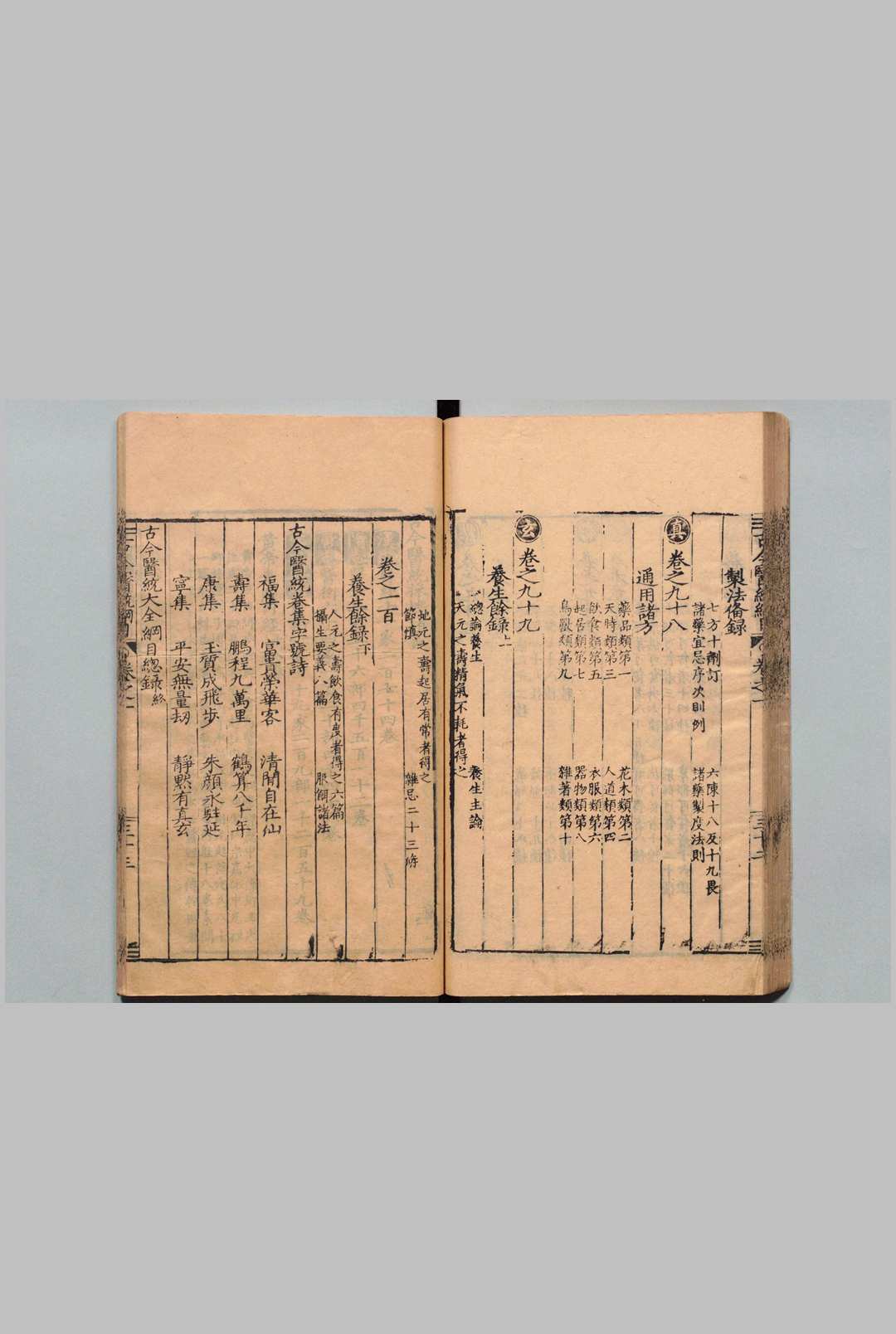 全书共100卷,卷1有“历世圣贤名医姓氏”,介绍270多名医家传略。卷2~5为《内经要旨》、《翼医通考》、《内经脉侯》、《运气易览》等;卷6~7为经穴针灸;卷8~92为临床各科证治,包括内、外、妇、儿、骨伤、五官科以及老年病400余种,每病载有病机、脉候、治法、方药、易简诸方、灸法、导引法等项。卷93~98为经验秘方,本草性能、功用及制法,通用诸方等,卷99~100为养生余录。