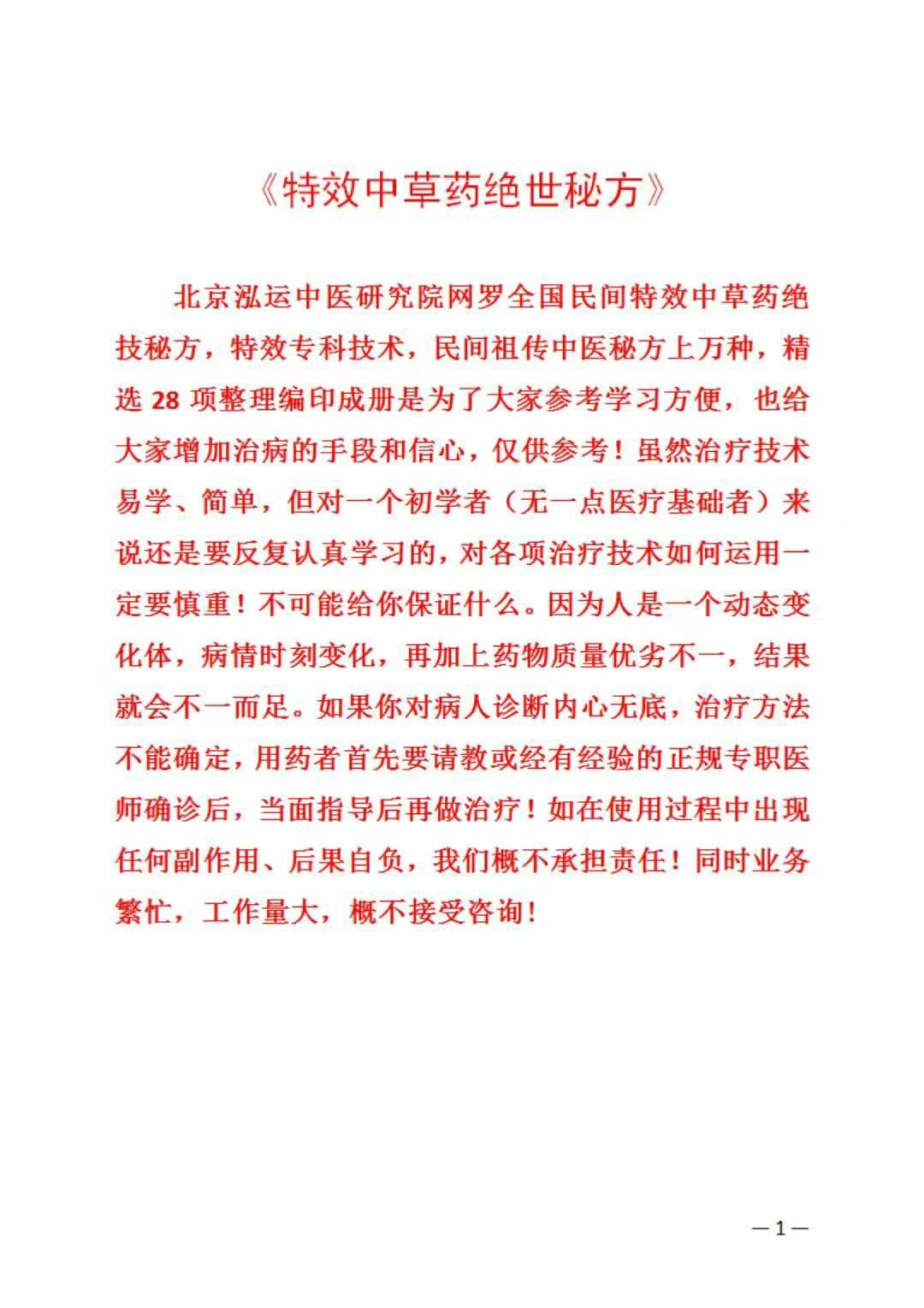 简介:《特效中草药绝世秘方》北京鸿运中医研究院编印 ,28种秘方,中医方书相关书籍。