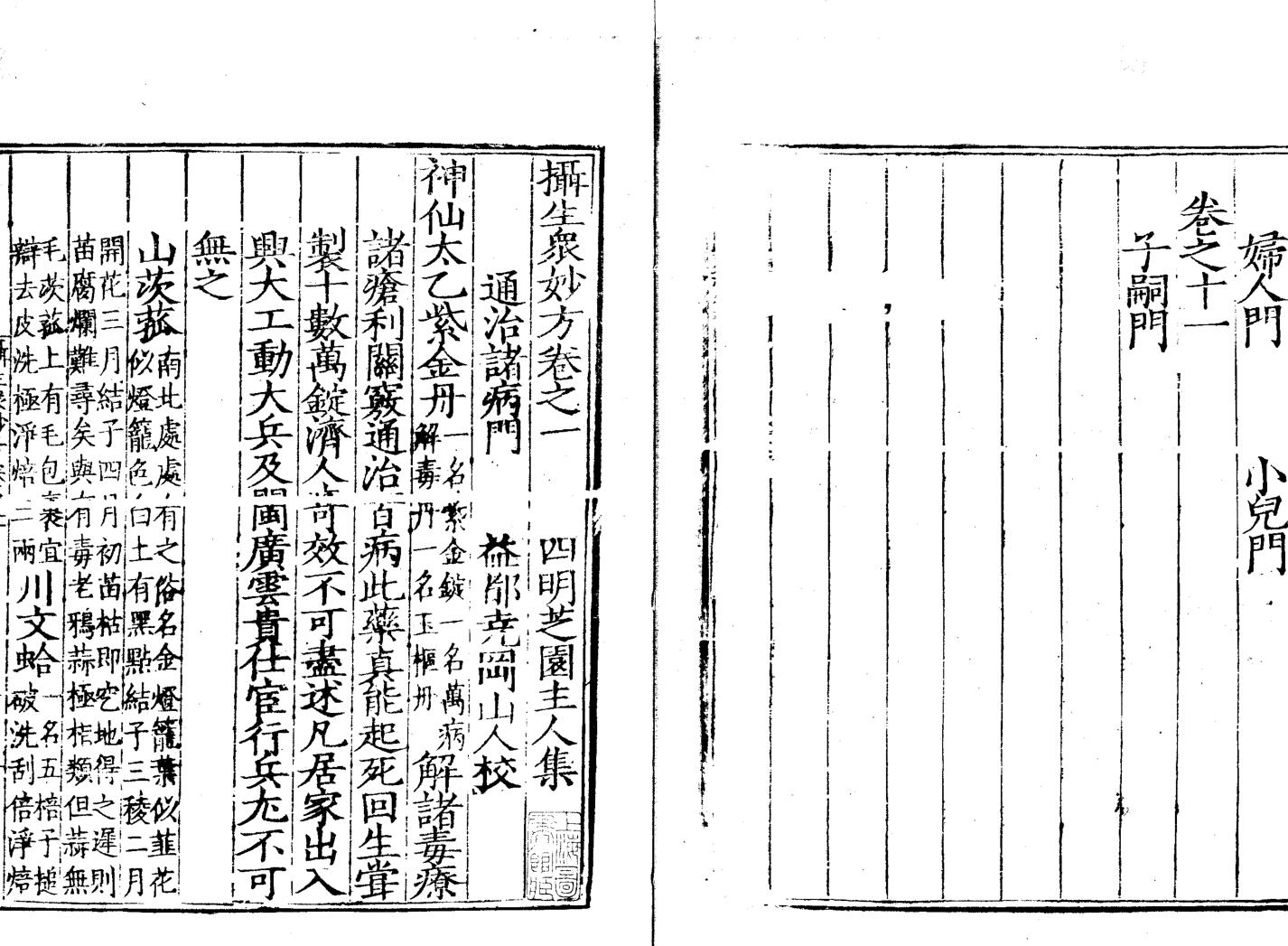 中医古籍 摄生众妙方十一卷急救良方二卷伤寒金镜録一卷