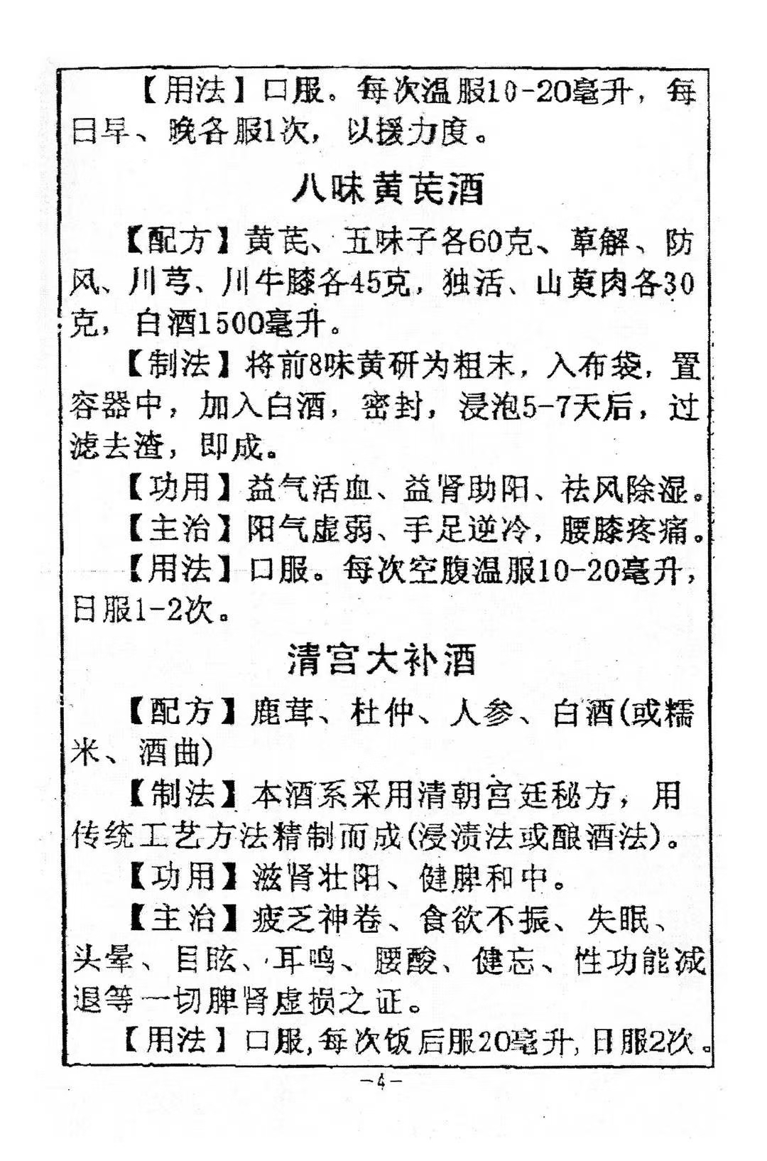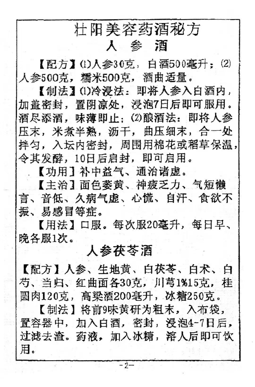 简介:《壮阳药酒方》民间秘方验方,内容包含:人参酒,清宫大补酒,御龙酒,助阳益寿酒,健步酒,仙茅助阳酒,清宫换春酒,十仙酒,还童酒,健康补肾酒,驻颜酒,枸杞酒,固本酒,鸡子美容酒,雄鸡酒等。
