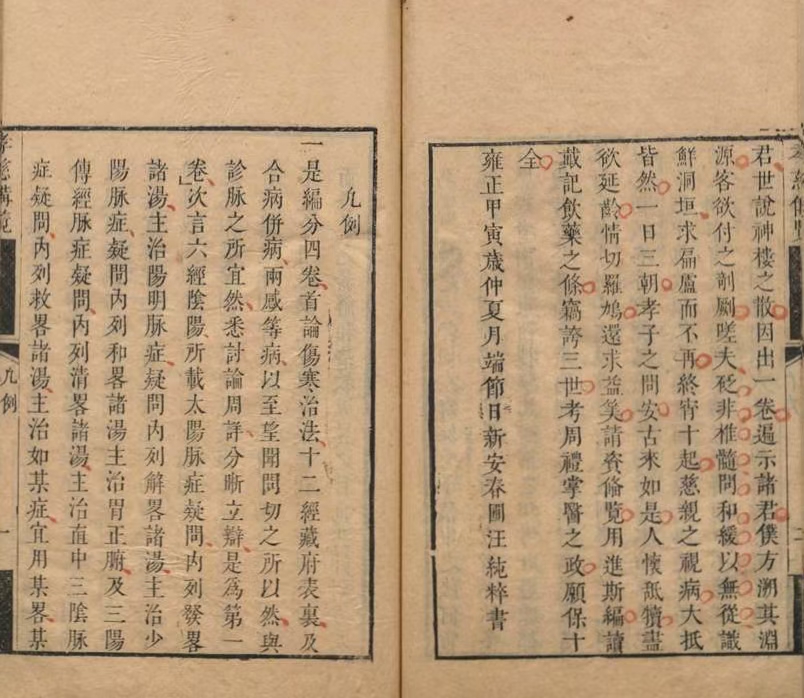 简介:《孝慈备览》 汪纯粹 清雍正12年,中医伤寒相关古籍,《孝慈备览伤寒编》是清代新安医家汪纯粹撰写的伤寒金匮类中医著作,成书于清雍正十二年(1734年)。汪纯粹字春圃,精于医术,雍正十一年(1733年)疫疠流行时施治有效,此书为其所著《孝慈备览全编》首编的伤寒部分。全书共四卷:卷一阐述伤寒治法、经络脏腑表里关系及合病、并病等病证,兼述望闻问切四诊;卷二解析六经脉证疑问及主治汤方;卷三详述伤寒六经病类证、变证与兼夹证;卷四辑录历代名医汤方九十九首,按发、解、和、清、救五法分类。该书属新安医派伤寒学派代表著作,现存雍正十二年杭城并育堂刻本。