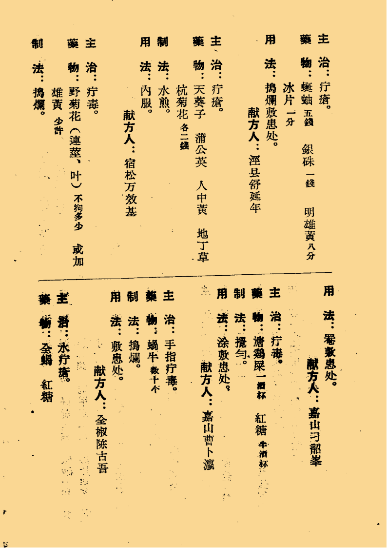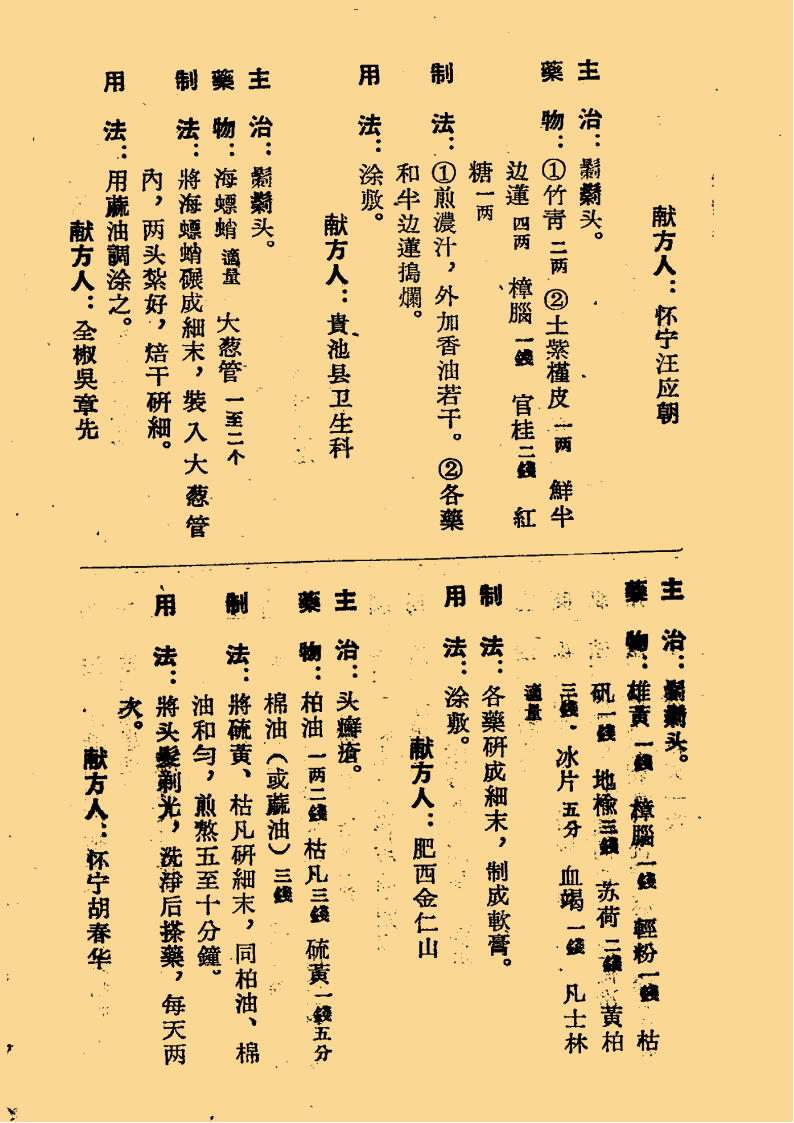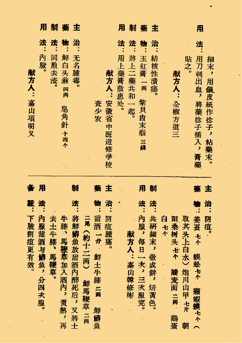 简介:《安徽外科名方选录》中医外科相关书籍。内容包含:疥癣类八方,秃疮类十一方,天泡疮类二方,黄水疮类五方,疔疮类十三方,跌打损伤类十五方,臁疮类六方,烫伤类九方,赤丹类五方,毒虫噬伤类十九方,痔疮类十二方等。