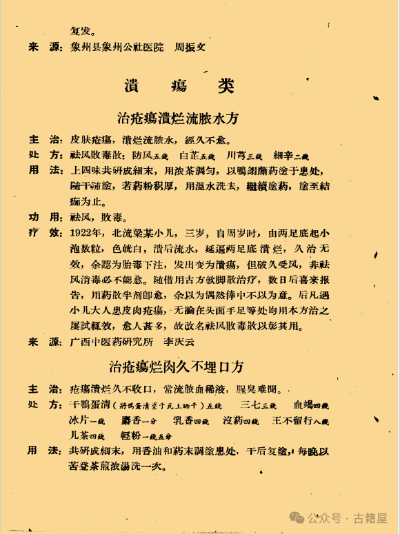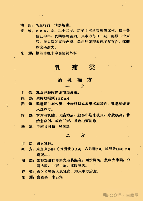 简介:《 广西中医外科选方汇编 》中医外科跌打皮肤科相关书籍。内容包含: 跌打损伤类(14方)接筋驳骨类(13方)炮 码 类(3方)止 血 类(3 方)异物刺入肉类(2方)汤火伤 类(9方)皮 癣 类(1方)皮肤湿毒类(4方)风 疹 类(8方)油 螆 类(2方)疮 疡 类(20方)疔 毒 类(5 方)骨 疽 类(2方)乳 痈 类(8方)无名肿毒类(2方)瘰 疬 类(5方)痔 疮 类(8方)溃 疡 类(3方)赘 疣 类(1方) 。