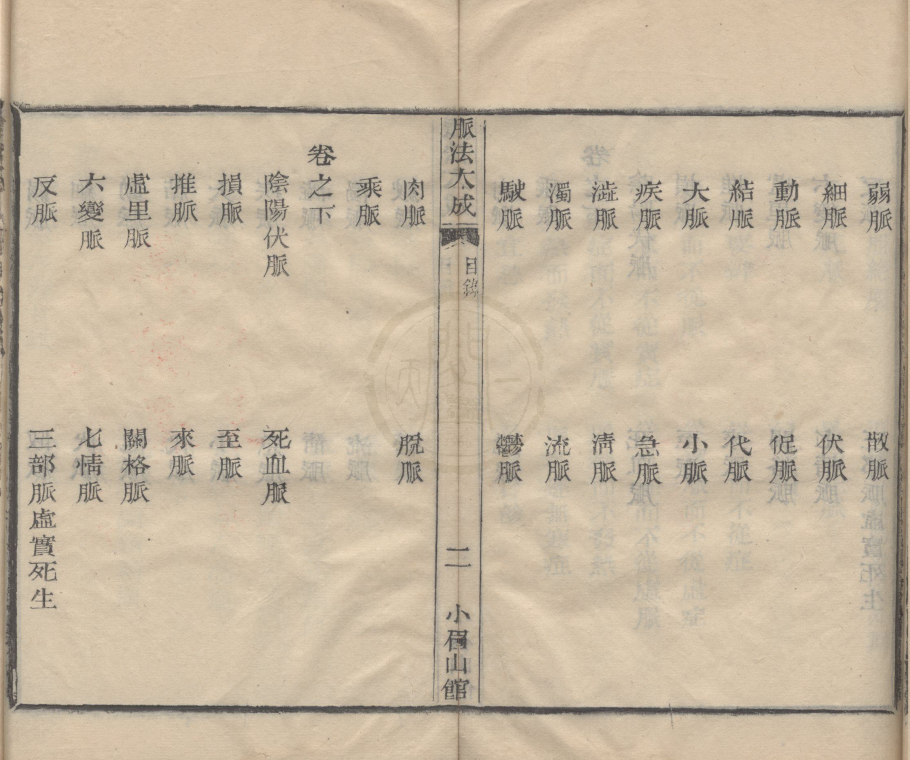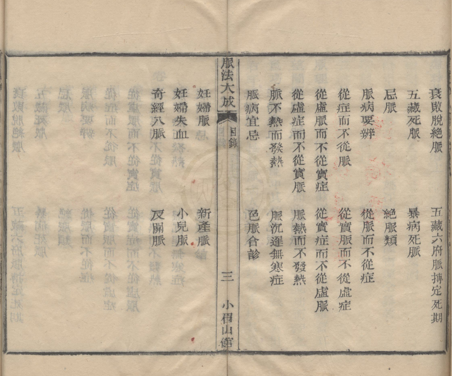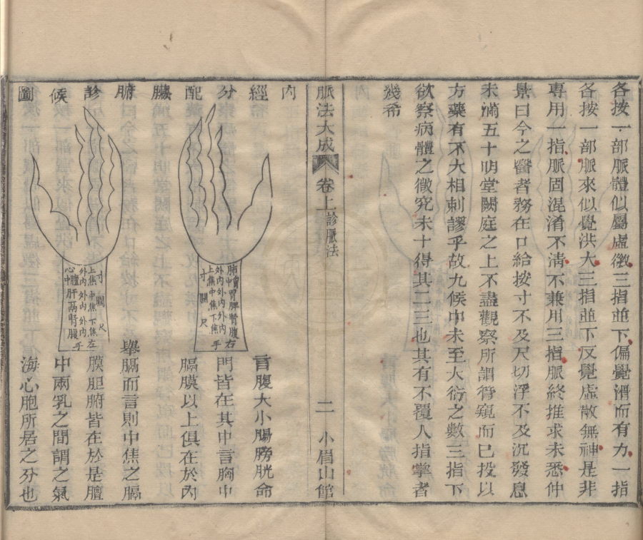 简介:《脉法大成》严洁、施雯、洪炜合撰,中医脉法相关古籍。成书于乾隆二十六年,全书共两卷,上卷详论诊脉法及各类脉象主病,计53篇;下卷论述阴阳伏脉、察脉虚实等,计36篇。该书是研究中医脉诊的重要参考文献,体现了清代中医脉学的理论与实践成果。