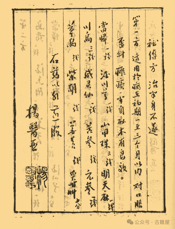 中医方书《名医秘方手迹》