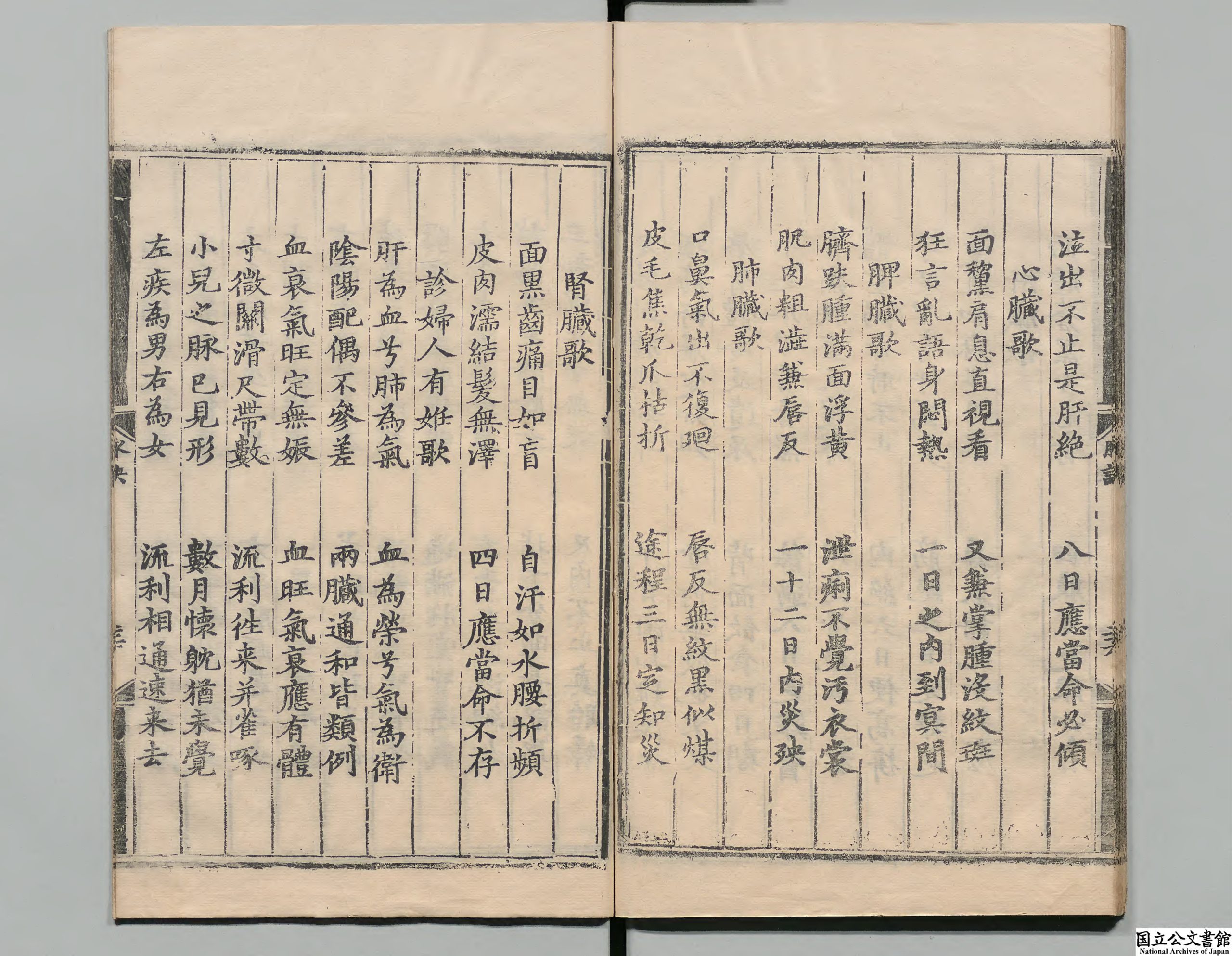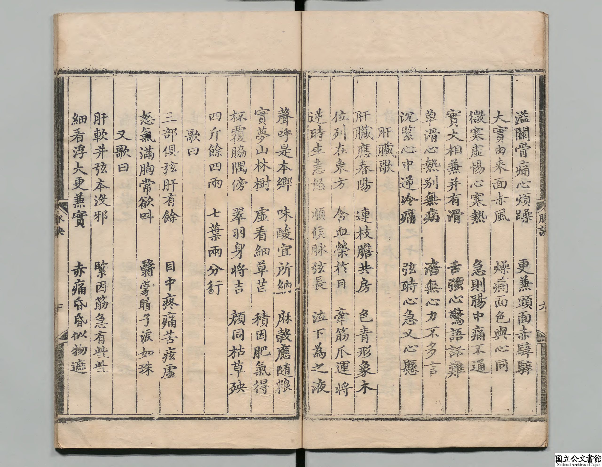 内容有:诊脉入式歌、心脏歌、肝脏歌、肾脏歌、肺脏歌、脾臟歌、左右手诊脉歌、论七表脉等等。