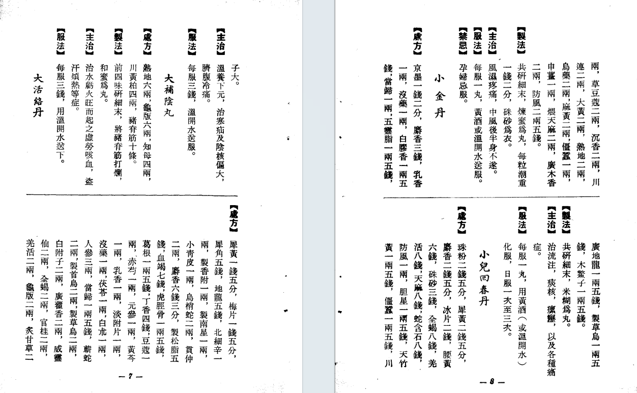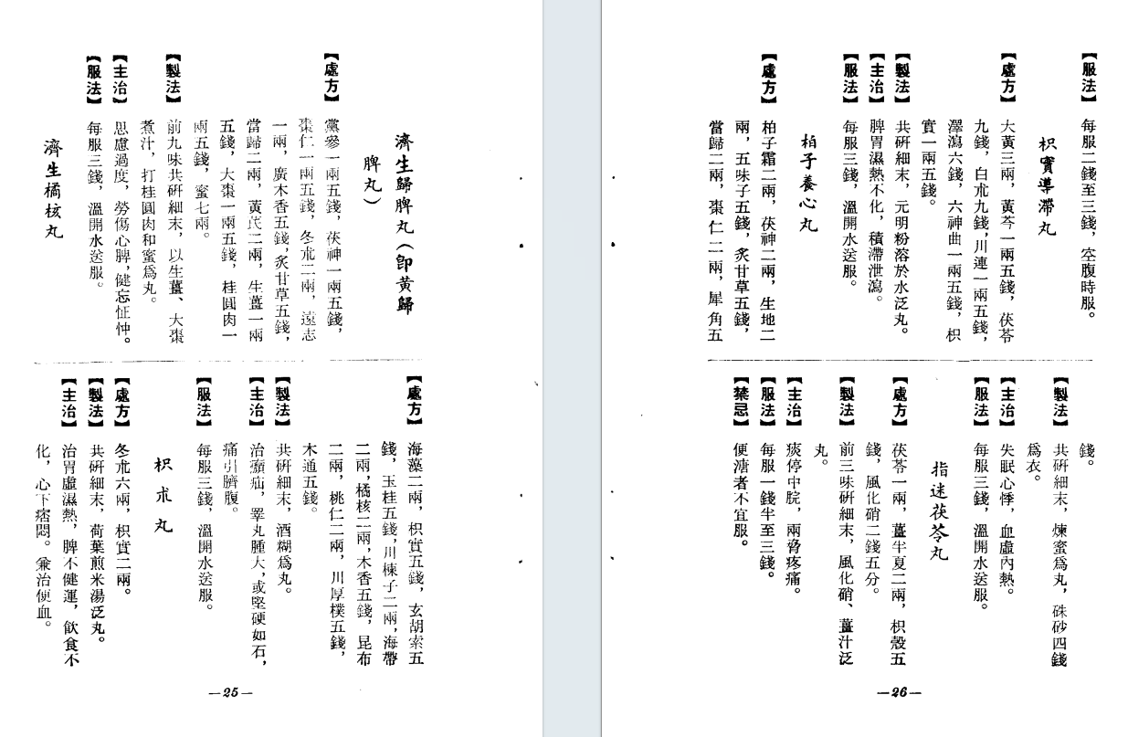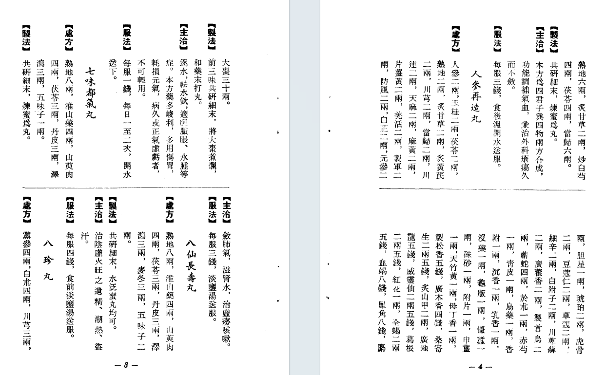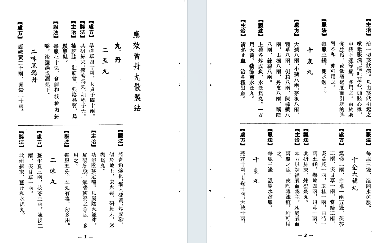 简介:《应效膏丹丸散制法》1975年香港得利书局,由戴甘霖编著。该书系统收录了丸、散、膏、丹四大剂型的制作工艺与临床应用方剂,内容涵盖选材、炮制、配伍及炼制工序等关键环节,并附有方剂索引。包含:二至丸、二味黑锡丹、二陈丸、十灰丸、十全大补丸、十枣丸、七味都气丸、八仙长寿丸、八珍丸、人参再造丸、人参养荣丸、九制香附丸、三才封髓丸、三封伐木丸、三层茴香丸、大补阴丸、大活络丹、小金丹、小儿回春丹、小活络丹、六君子丸、六味地黄丸等,中医方书相关书籍。